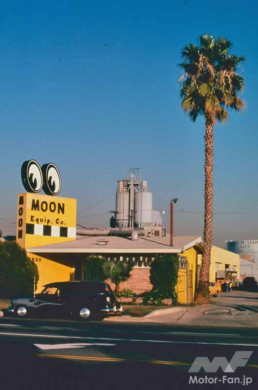 カリフォルニア州サンタフェスプリングに店を構えるMOON(現・MOONEYES USA)。1980年代のMOONは最盛期を過ぎ、年配の常連客を相手に細々とビジネスを続けていた。(PHOTO:MOONEYES)