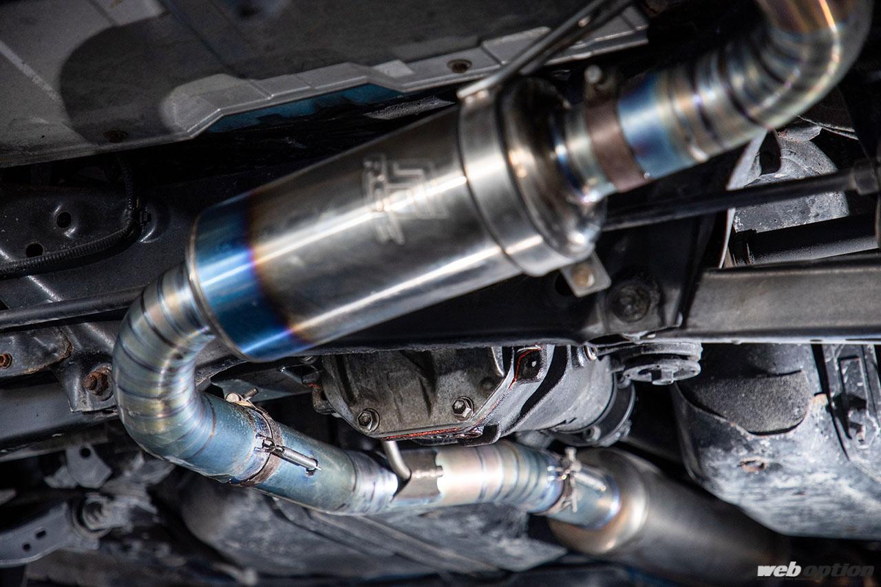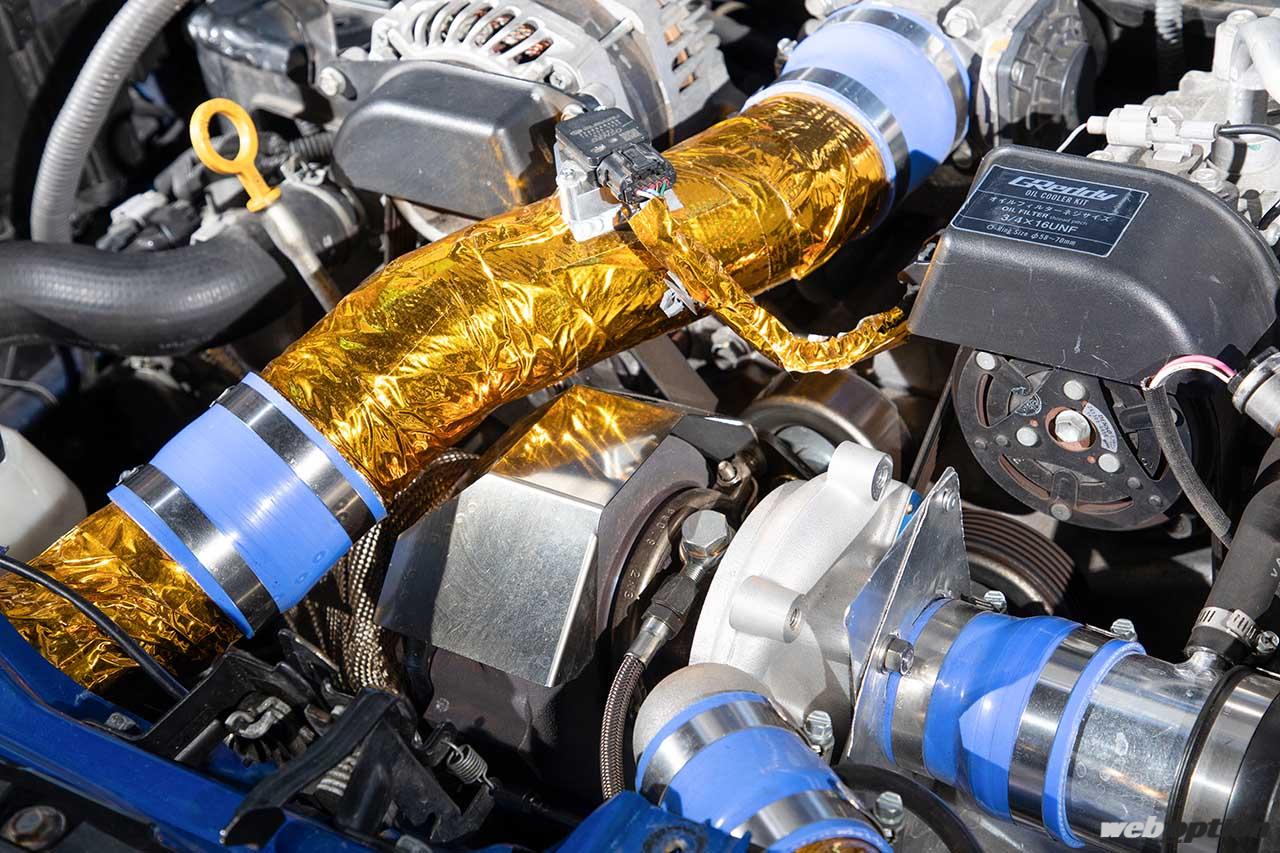 タービンはトラストのT518Z。ブースト圧は基準値の0.5キロに抑えているが、レクサスIS Fとほぼ共通の機構を持つミッションはパワー耐性に優れているため、さらにブーストを高めることも可能だ。