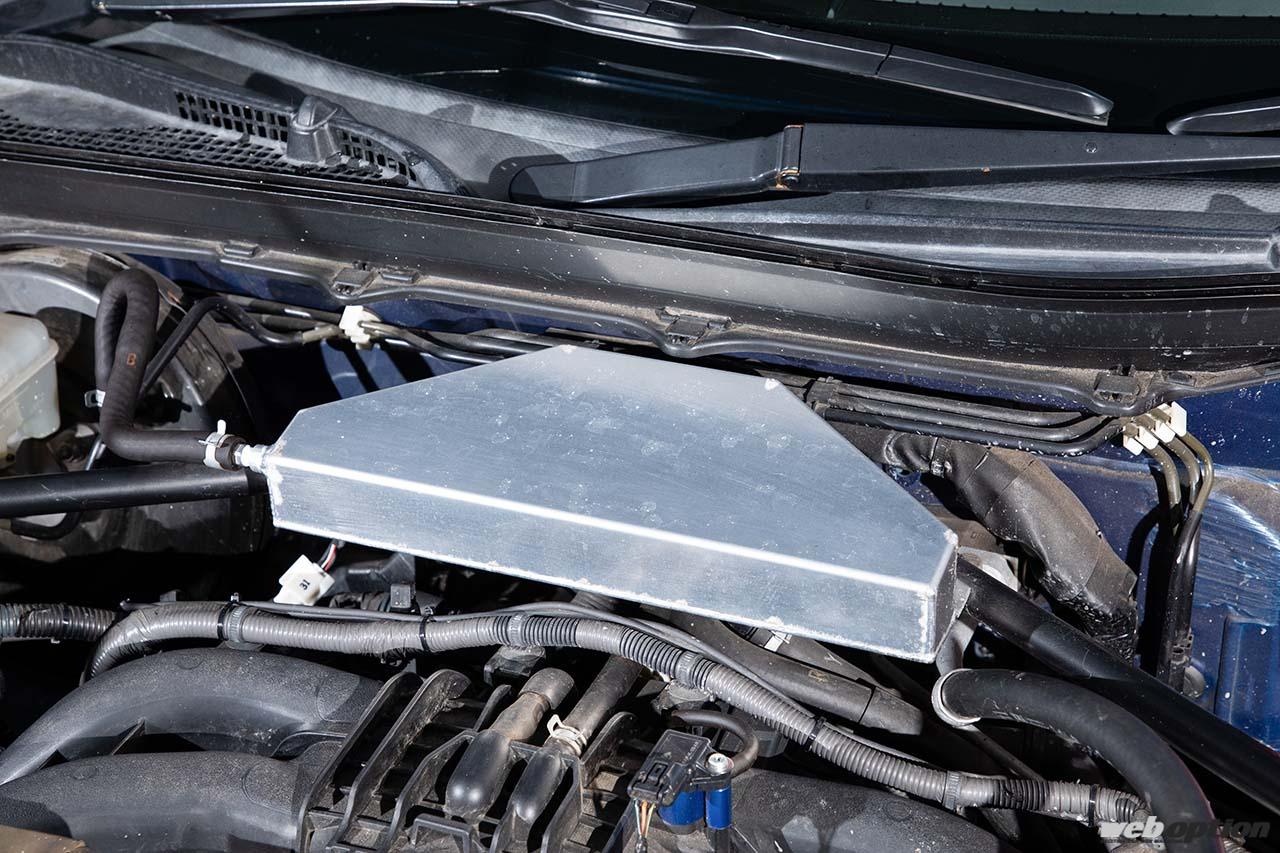 ATモデル特有のバキュームポンプはその構造上(機械式真空ポンプ)、エンジンへの負荷が否めない。そこで、純正を撤去した上で、エンジンに負荷を与えることなくインテークから得られる少ない負圧を効率よく蓄積するタンクを設置。レスポンスアップに大きく貢献するチューニングだ。