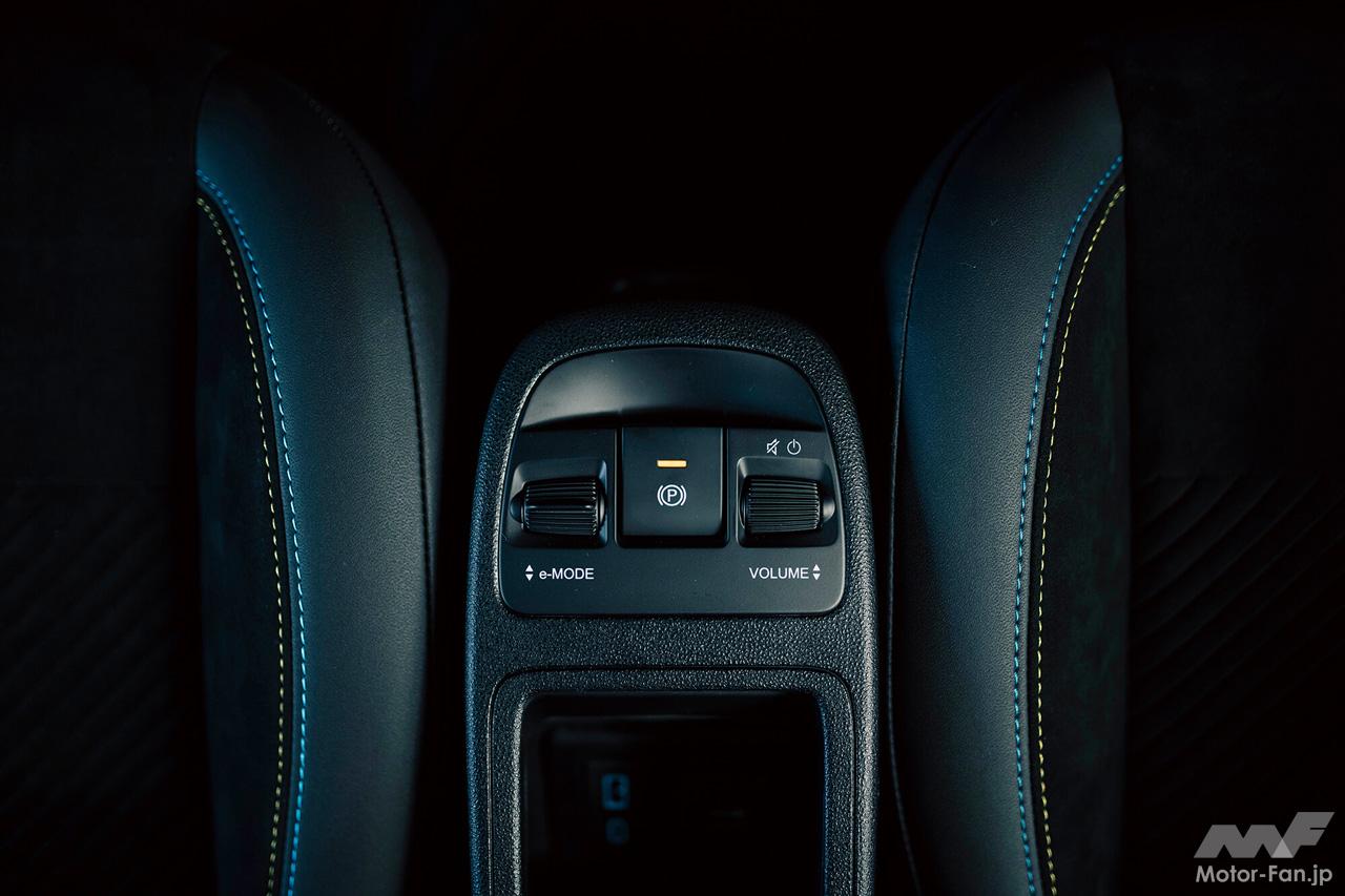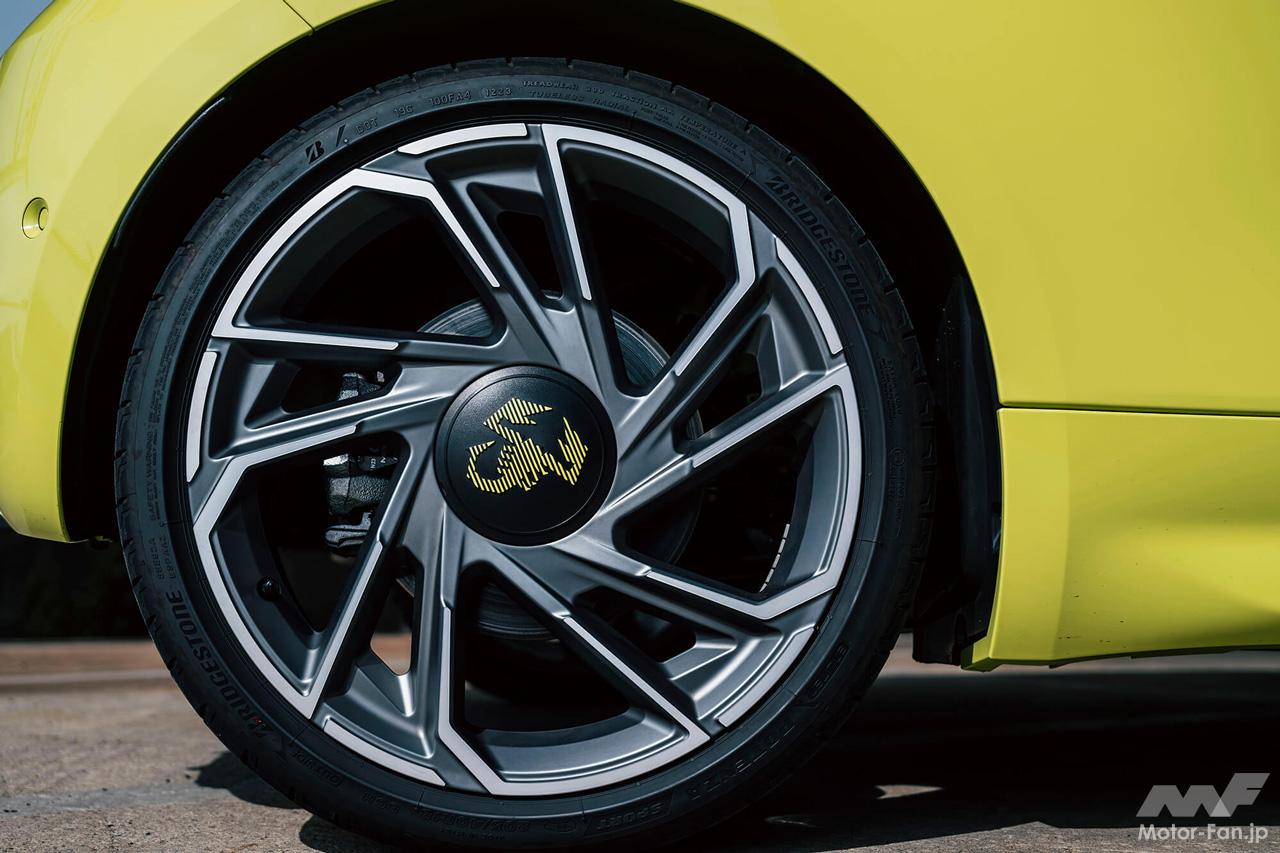 また、ガソリン車に対し、前後重量配分の改善(57:43)およびトレッドの60mm拡幅(フロント1470mm/リヤ1460mm)により、クイックなハンドリングと安定性を両立したことで、日常で最も走行シーンの多い、中間加速および立ち上がり加速のパフォーマンスを、より楽しく爽快なものにしている。