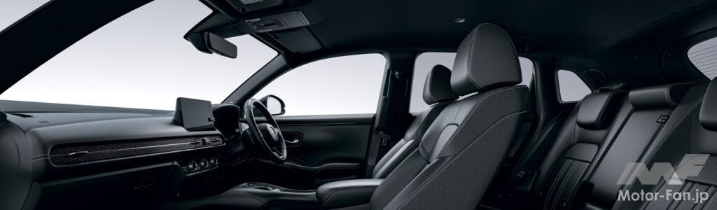 ブラックスタイルは、ブラックをアクセントに、スポーティでスタイリッシュな内外装を実現したほか、e: HEV XブラックスタイルにおいてはHonda CONNECTディスプレイや運転席/助手席シートヒーターなど、人気の機能を標準装備とした。