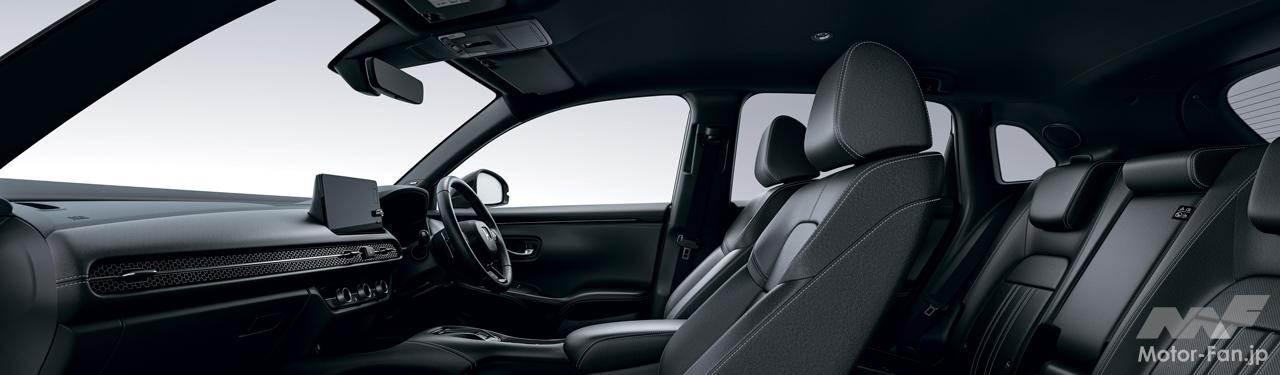 ブラックスタイルは、ブラックをアクセントに、スポーティでスタイリッシュな内外装を実現したほか、e: HEV XブラックスタイルにおいてはHonda CONNECTディスプレイや運転席/助手席シートヒーターなど、人気の機能を標準装備とした。