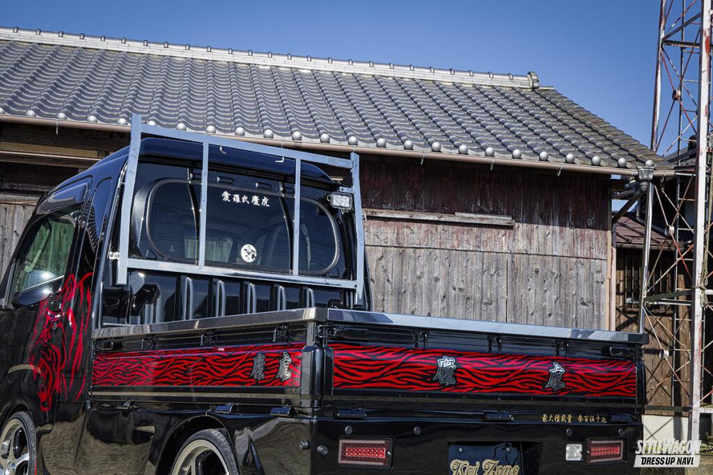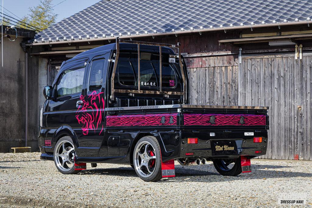 慶虎や慶番でおなじみの「ケイゾーン」は、軽トラカスタムの老舗的存在で、早い時期から軽トラカスタムを行ってきたブランド。そのカスタムは、例え軽トラであろうが、フルエアロ&シャコタンが基本で、内外装から足まわりまでフルにカスタムできるパーツラインアップを誇っている。