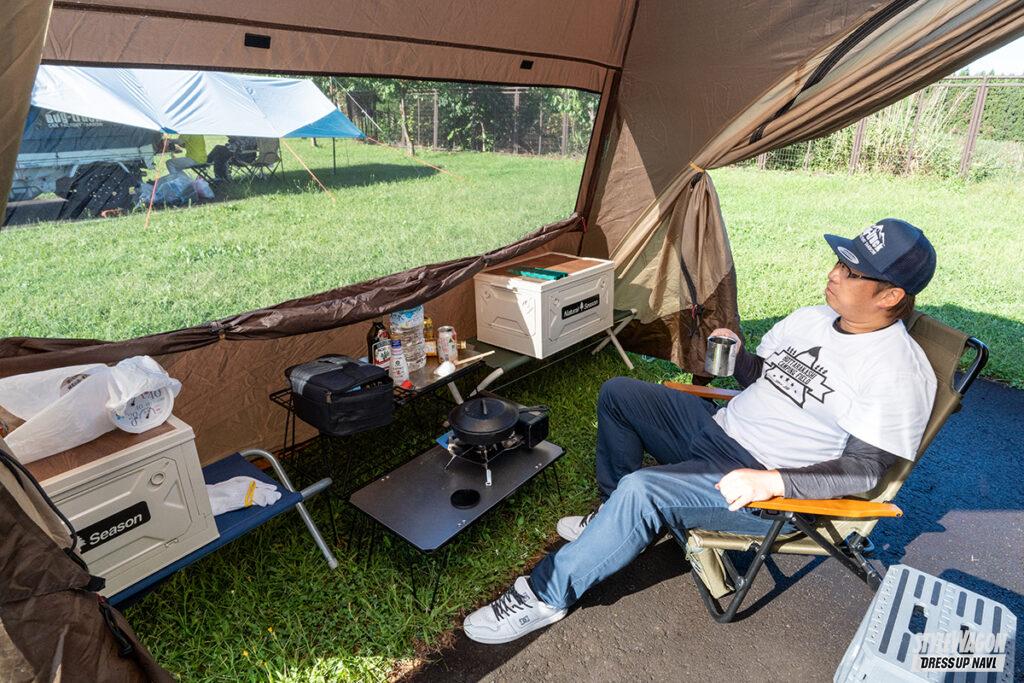 軽トラのカスタム雑誌でバグトラックの存在を知り、そこから大人気の「小野Tube」を視聴するうちに無限の可能性と共感を覚えてしまったというタクトさん。バグトラ乗りとなった現在は遊びやキャンプだけに留まらず、日常的に取り扱い商品を運搬したりと仕事でも大活躍しているとのこと。また、カスタマイズにも意欲的で2インチのリフトアップをはじめ、ハードカーゴのルーフラックやヒッチメンバーなどを装着。就寝スペースとなるテント内部にはポータブル電源で稼働する小型の扇風機を設置するなど快適性の向上にも努めております。