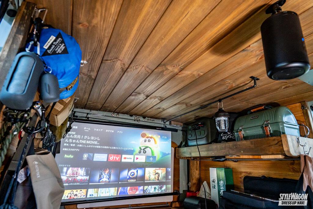 フェリーも駆使して九州から青森へ駆け付けたというロングディスタンス賞もののこばさんは、イシチャン同様、薪ストーブのインストールを前提に煙突穴を開口。とにかく美味しい食べ物と旨い酒を追求するスタイルで、アオリを利用したワイヤー吊りのテーブルやIGT(アイアングリルテーブル)互換テーブルなどで理想的な食卓を再現。リタイヤ後の生活をクルマの乗り換えも含めて熟考していた折、バグトラックの存在を知って一目惚れ。以来、自身の趣味全開の秘密基地としてフル活用中。サイズ感、使い勝手のほか、軽自動車ベースならではの維持費の安さにも感銘を受けたそうですよ。