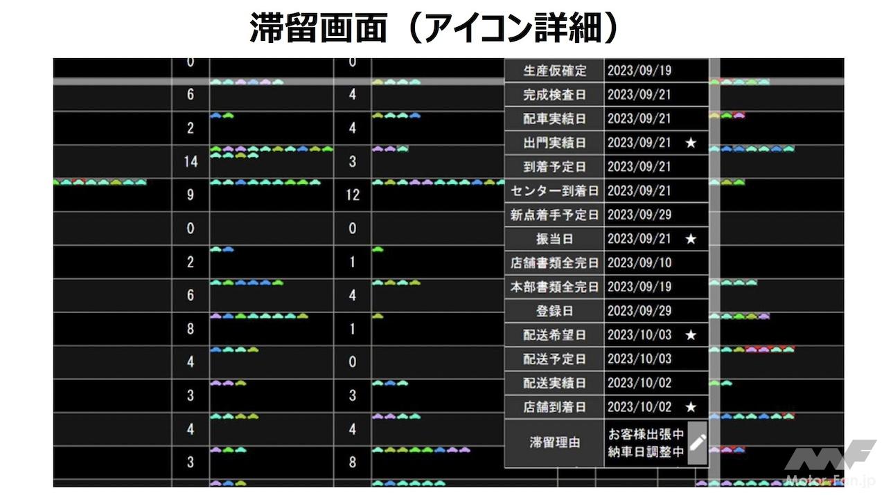 生産から納車までの全工程の車両を可視化し滞留車を削減