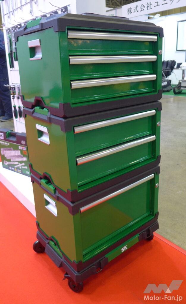 『TOOL JAPAN』の会場に展示されたSK HAND TOOLSの製品は、近年最大のヒット作であり、独自設計のメカニズムを組み込んだ『X-FRAME ラチェッティングレンチ』を筆頭に、伝統の丸型ラチェットハンドル、各種ソケット、モンキーレンチ、コンビネーションレンチ、ドライバー、ウォーターポンププライヤーやニッパーなどの握りもの、そして組み替え可能なモジュラーシステムを採用したツールチェストだ。どれも本国の人気商品であり、同社らしい質実剛健な製品でありながら、仕上げは丁寧で見るからに上質工具とわかるものばかりだ。