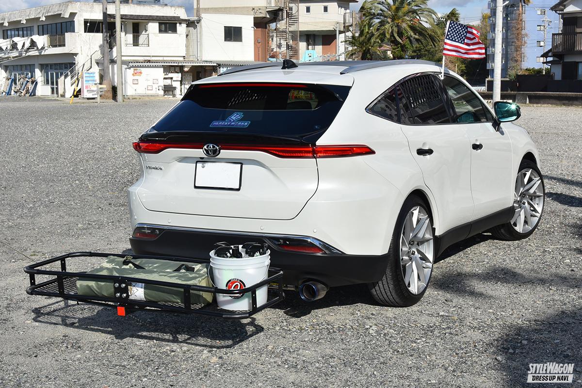 今回のミーティング「THE VAN FEELS」の主催者であるtempestさん。「USDM好きが集まれる場所を作りたかった」と今回2回目を開催。愛車は「ハリアーなんだけど、何だか雰囲気が違う」という点を狙って、サイドマーカー加工やUSテール、ルーフレールなどを装着。ハリアーの北米モデル「VENZA」仕様にカスタムしている。