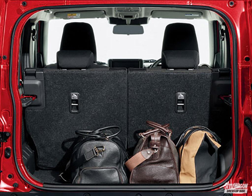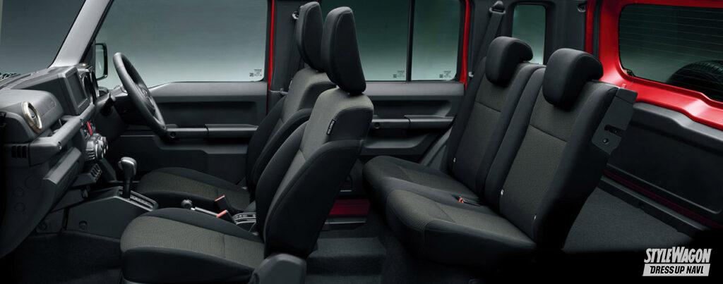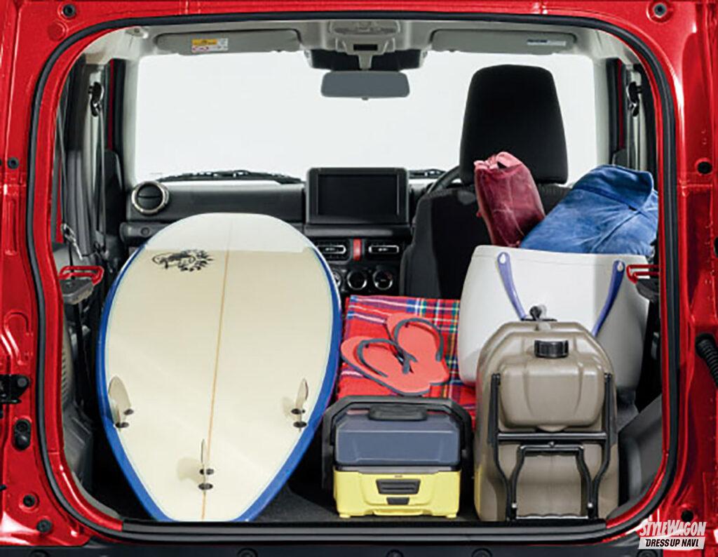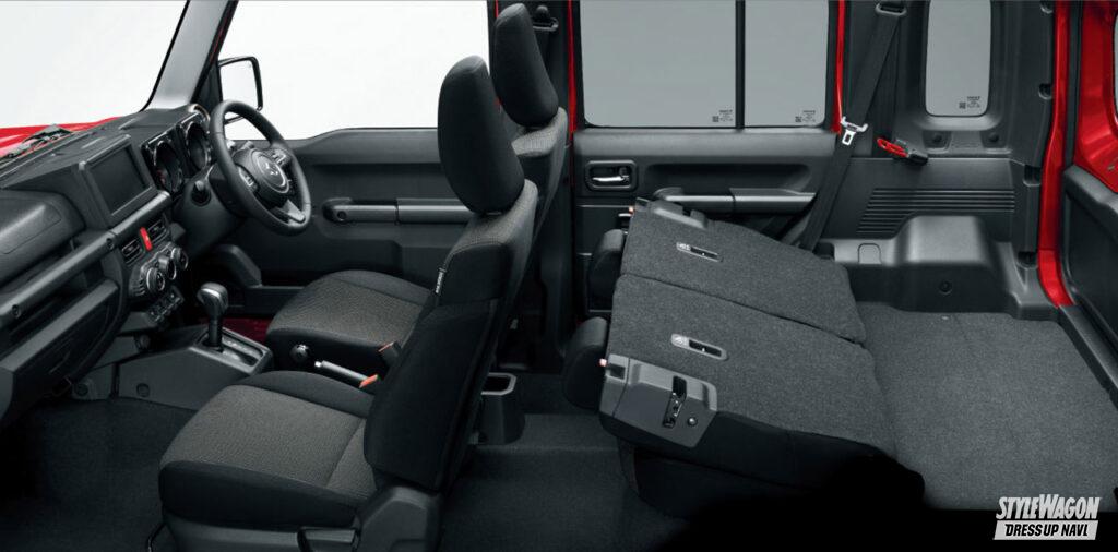 ホイールベースの延長に伴い、4名乗車時の荷室床面長がジムニー シエラに対し350mm拡大している。