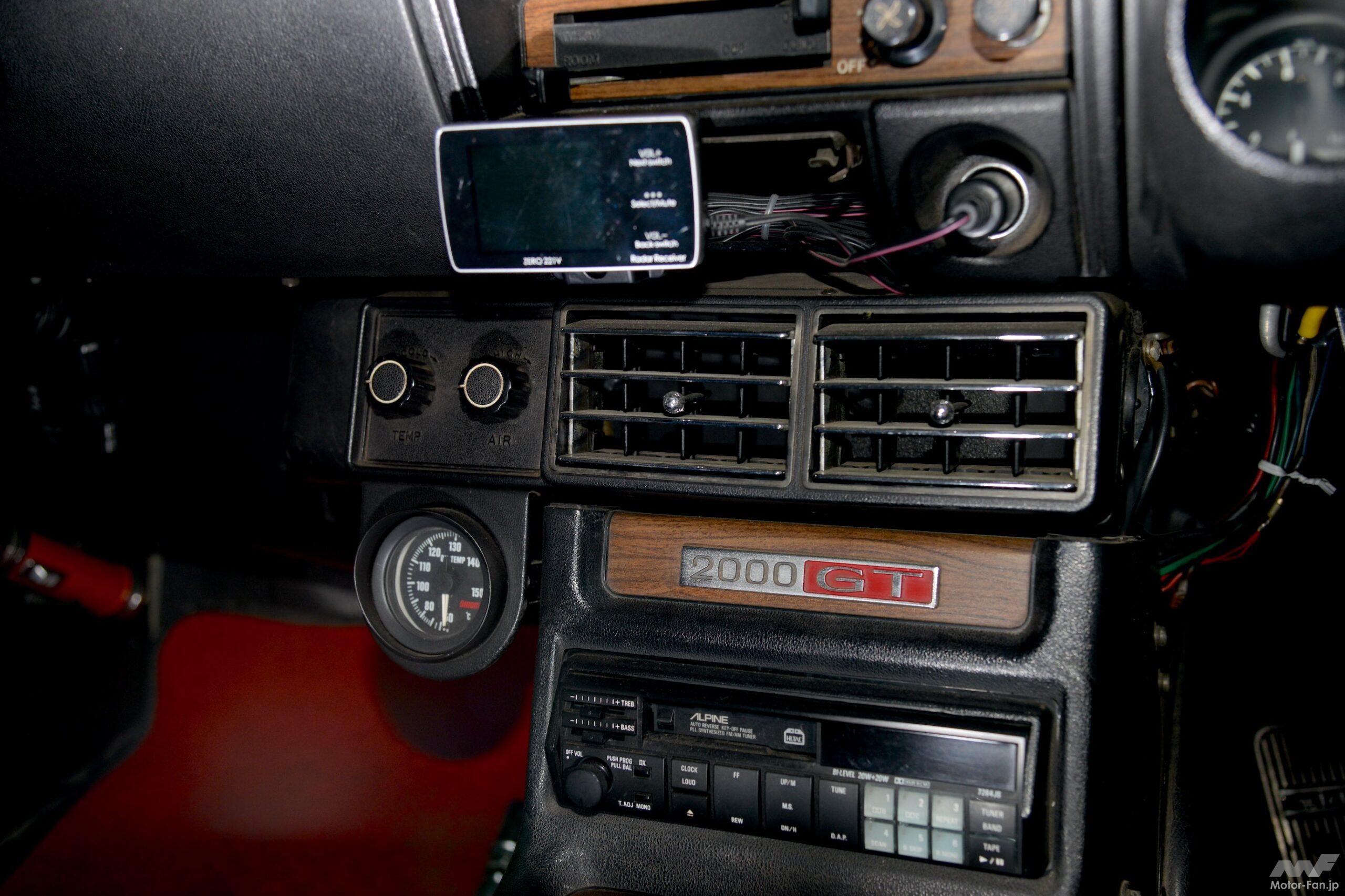 GT-Rらしくオーバーフェンダーはリヤだけとしつつ、フロントにもワイドタイヤを履かせるための処置だ。そのフロントにはAP製のブレーキシステムが組み込まれ、変更されたサスペンションとともにサーキット走行まで楽しめるようになっている。もちろんトランスミッションやデファレンシャルまでオーバーホールされていて、42年間乗り続けて一通りのメンテナンスを済ませた状態。貴重な当時モノのボカシガラスがフロントウインドーに組み込まれており、今なら高値で売れることはもちろん承知しているが、一生手放すことなどない鈴木さんなのだ。