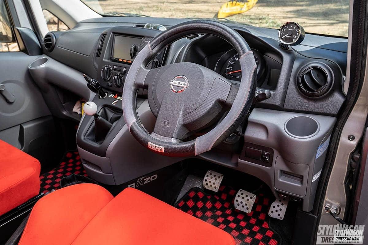 長距離移動もこだわりのレカロシートで疲れ知らず。さり気なくメーターを追加したり、ペダルを変えたり、そして超レアなマニュアル車を選んだというのもアクティブなosotomanさんらしい。