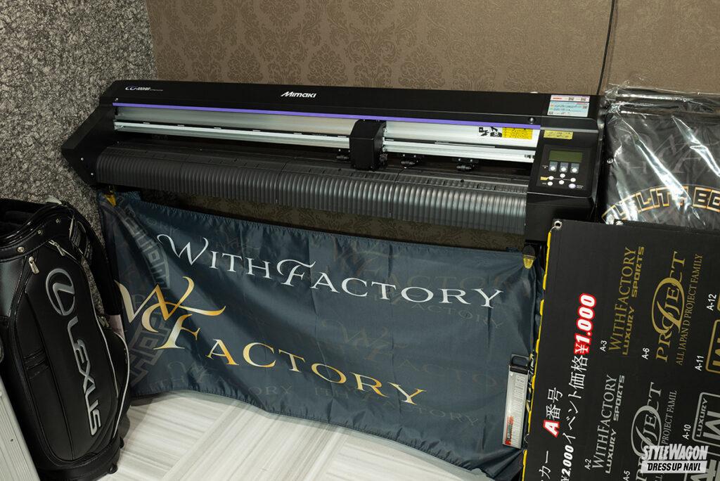 現在、力を入れているのが、ボディラッピングやプロテクションフィルム。愛車のイメチェンやボディ保護に欠かせないメニューだが、ウィズファクトリーではカッティングマシーンも導入し、イメージ通りの施工が可能となっている。釈迦郡(しゃかごおり)代表のポリシーとして「一切手抜きをしない作業」が自慢で、エアロ加工のFRP貼りから削り、塗装と、納得のいくまで一人で作業を行うのがモットー。それだけに時間は掛かるが、完成した車両は、オーナー大満足の仕上がりで、そのワザを求めて全国からお客さんが絶えない大人気ショップとなっている。究極の1台を手に入れたいのなら、まずはウィズファクトリーに相談するのがオススメだ。