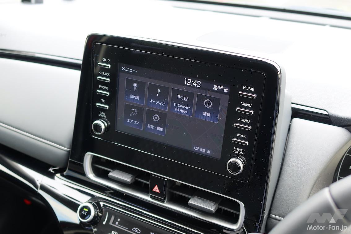 ヤリスよりも後から発売されたぶん、アクアには価値が上乗せされているのだろうか。インストルメントパネル中央には、トヨタのコンパクトカーで初採用となる10.5インチのディスプレイオーディオが設定されている(Zグレード)。ヤリスの場合は8インチだ。8インチでも不足はないが、10.5インチのほうが当然、見やすい。試乗車のGは7インチだが、実用性に不足はない。