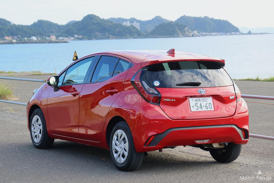 後席のスペースが充分確保されているのもいい。ヤリスでは、身長184cmの筆者が運転席に座った状態で後席に移動すると、膝が前席にシートバックにめり込んだ。お世辞にも、快適とはいえない状態だったのを覚えている。同じようにして新型アクアの後席に乗ってみたら、膝前には充分なスペースが残った。これなら、大人4名で快適に長距離移動ができると感じた。スポーティなルックスと、キビキビした動きが好みならヤリス、しなやかさのアクアといったところだろうか。