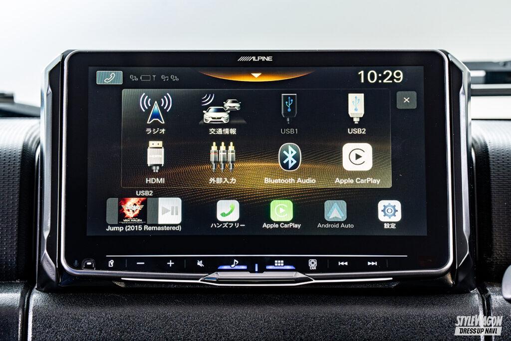 車種専用にもこだわってきたカーナビ「ビッグX」で多くのファンを得ているアルパインは、ディスプレイオーディオ「ビッグDA」にも車種専用を設定。新たに登場したのは、JB64ジムニー&JB74ジムニーシエラ専用モデルで、ダッシュボードと自然に繋がるパーフェクトフィットシリーズとしてのリリースとなった。車種専用ならではのこだわりは、純正と変わらぬ取り付け位置の高さで前方視界を確保し、専用パネルはジムニーらしいラギッドなデザインを採用。さらにイグニッションONで表示するオープニングにはジムニーのイラストが登場し、ジムニーの車室内の音響特性を考慮したサウンドセッティングにも対応する。またナビ同様、同ブランド製品を使った拡張性の高さも魅力だ。