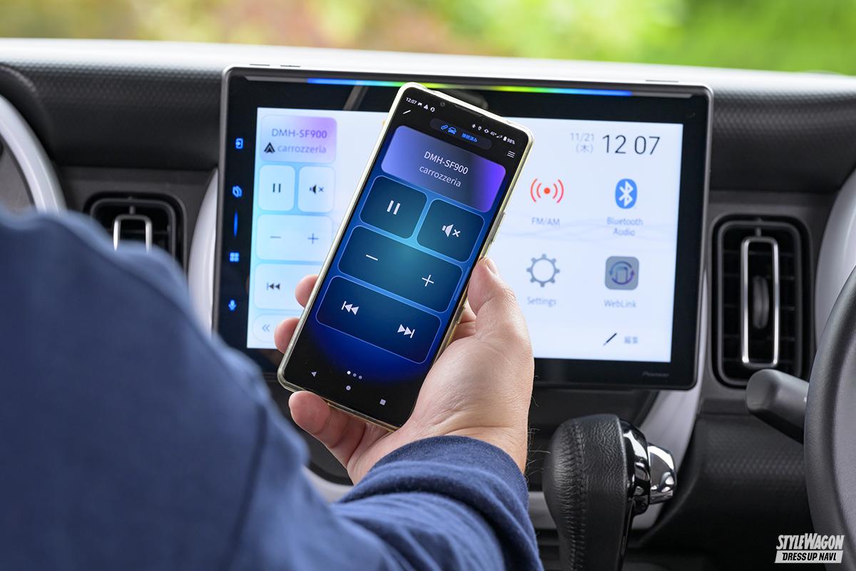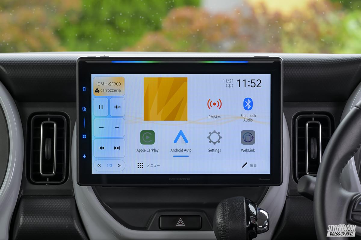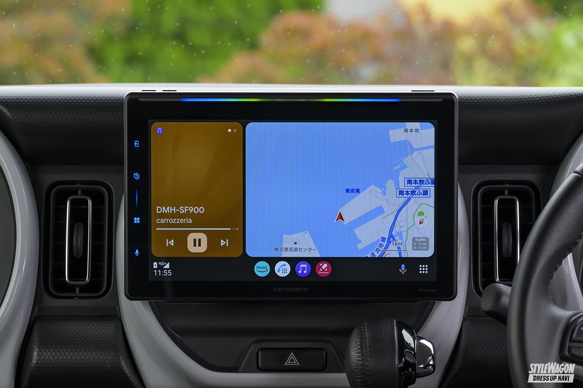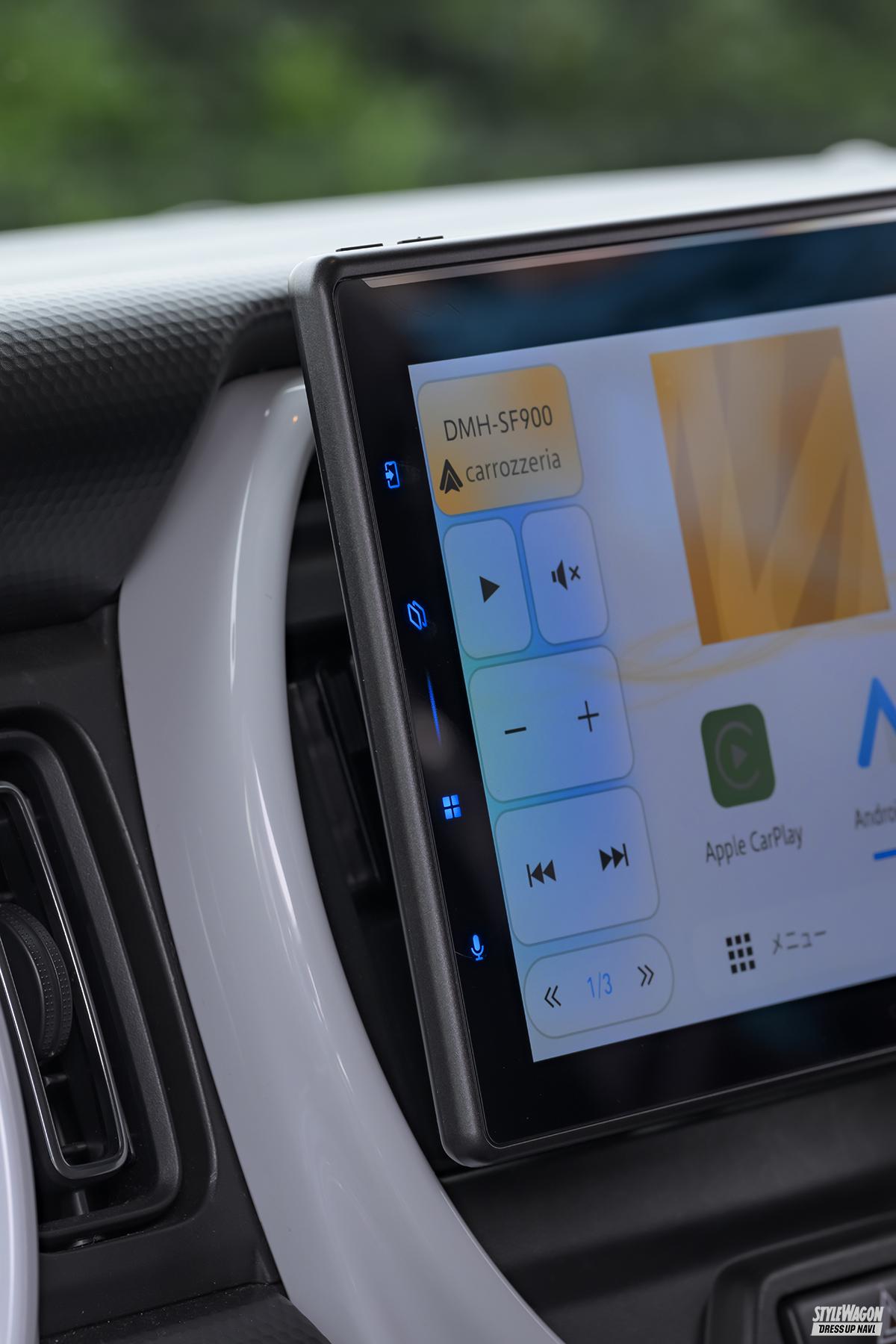 カロッツェリアの最新DAは、10.1型大画面の「DMH-SF900」。画面のみが別体となるフローティングタイプで、通常のオーディオスペースでは収まらない10.1型でも400車種近くに装着可能な汎用モデルだ。DAの要となるスマホ接続は、iPhone、Androidともにワイヤレス接続が可能で、エンジンをかけたらすぐに繋がるシンプルな使い心地がいい。画面上部には、音楽やルート案内に連動する「ルミナスバー」を新採用し、ドライブを快適かつ楽しくサポート。また、新開発の「PxLink」は、楽曲の再生/停止やイコライザー設定など、40種類の操作キーから好みのものを画面上に配置できるスマホアプリ。これを使えば、DA画面上は地図などを表示したまま、スマホからDAを操作できるようになる。オーディオ能力も高い。高音質パーツを採用し、独自の音質チューニングを施すとともに、タイムアライメントやイコライザーなど調整機能も装備。いい音で、かつ簡単操作を実現するカロッツェリアならではのDA機だ。