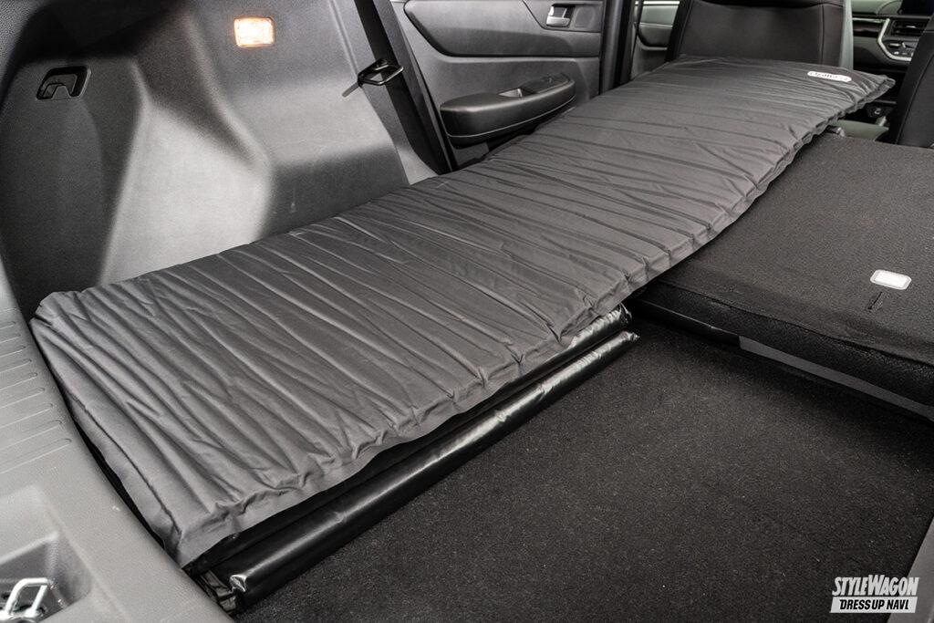 そんな「WR-V」での車中泊は想像以上に快適! 就寝スペースの確保は前席を前にスライドして後席を倒すだけ。ただこのまま寝るのは少々厳しい。「WR-V」は荷室部分が後席よりも低くなっているため約120mmの段差ができてしまう。この段差を埋めるためにテントのインナーマットとして使用する厚手のマットとブランケットを使い高さを調整。次は長さの問題。荷室と後席の背面部分だけだと長さが1400mm程度と、大人が寝るにはかなり短い。そこで助手席と後席の間にできる隙間を利用。2ℓの水1ケース等を使って隙間と段差を整え、足りなかった長さもしっかり確保。あとは車中泊用のマットを敷いて就寝スペースが完成。ただ気になるのは後席を倒した時にできる傾斜。見た目はかなり斜めに見えるが、頭を高い位置に置いて寝れば全く気にならないほどぐっすり眠れた。少々準備に手間はかかるが、車中泊の選択肢としては申し分なさそうだ。