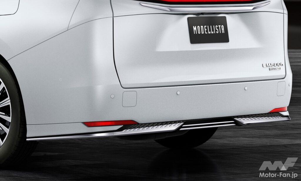 『MODELLISTA シグネチャークロームセレクション』は、モデリスタが得意とするクローム加飾のパーツのセットパッケージ。新型LMの水平基調のスタイリングやシルバー加飾とのマッチングが良く、ベース車のデザインを損なうことなく魅力を引き立てくれる。