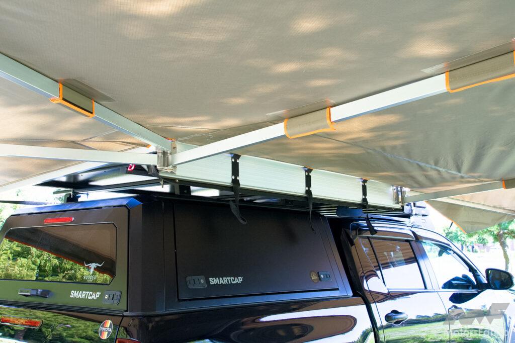 しかも、ルーフトップテントは横置きタイプなので、まるでツリーハウスのような巨大なベッド空間を生み出している。ともかく、ハイラックス+ハイラックス荷台仕様のトレーラーは統一感があり、グッドアイデアといえるだろう。
