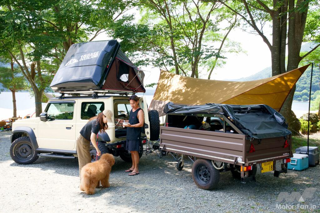 ジムニーは車中泊はおろか、通常のキャンプでさえ荷物の収納には苦労するが、このタイプならば2名+ワンコでも快適なキャンプができそうだ。ポイントは、やはり荷物用のトレーラーがドッキングされていること。これならば長期間の冒険旅行も楽にできるだろう。