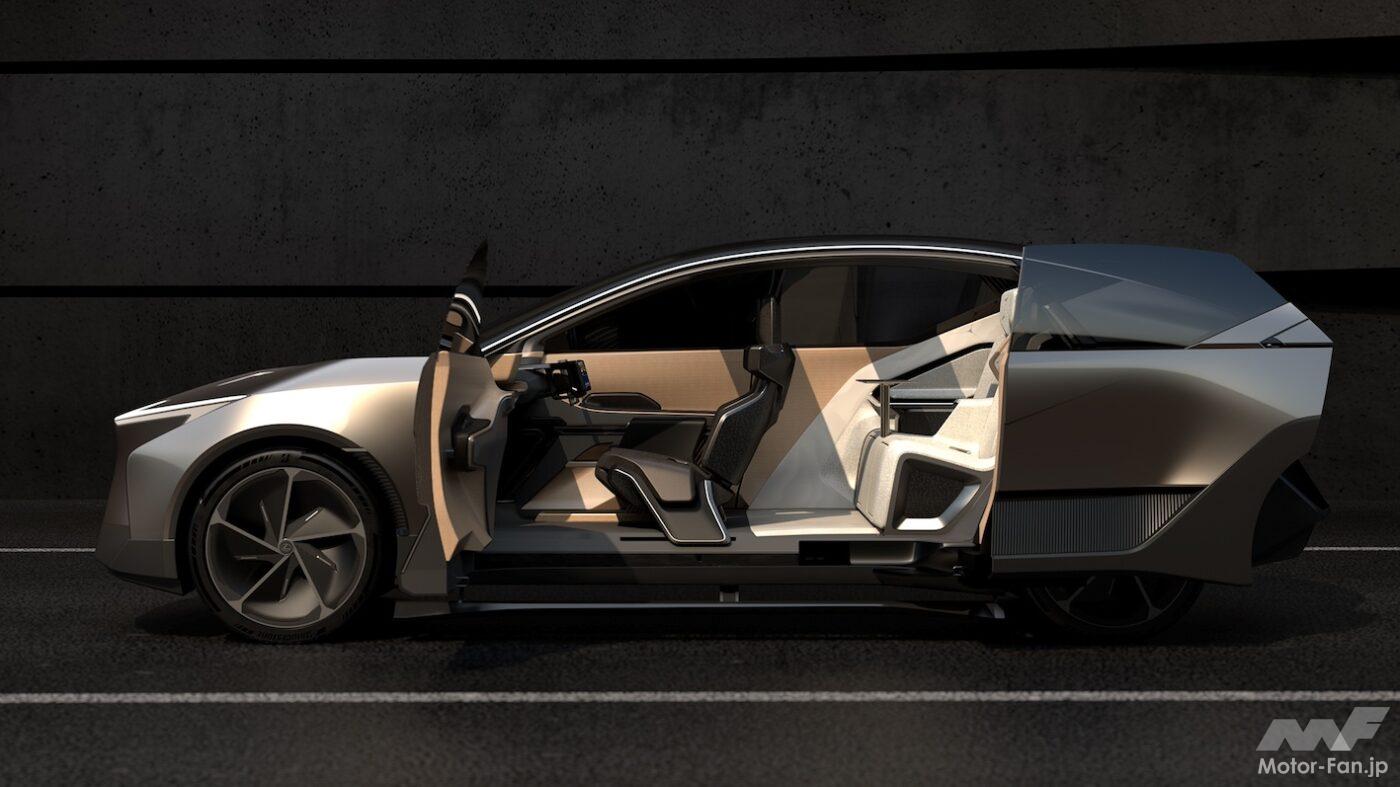現行レクサスLSやメルセデス・ベンツEQSと比べて全高が高いのは、パッケージングを考えたうえで、近未来のフォーマルセダン(ショーファードリブンカー)の姿の提案とみることもできる。
