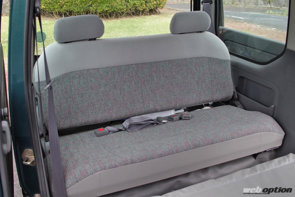 さらに、2列目は360度パーソナル回転機構付きで、写真のような角度で固定することもできる。回転対座を含む多彩なシートアレンジが、この時代のワンボックス車らしい。