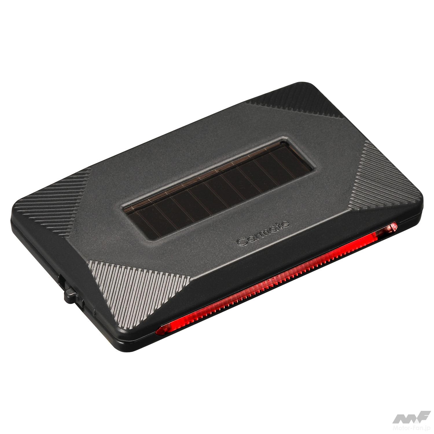 カーメイトでは、配線不要のソーラー充電式、光センサーを内蔵して暗くなると自動で発光点滅する『ナイトシグナル』をシリーズ展開。新製品として、光り方で選べる3タイプが追加ラインアップされた。