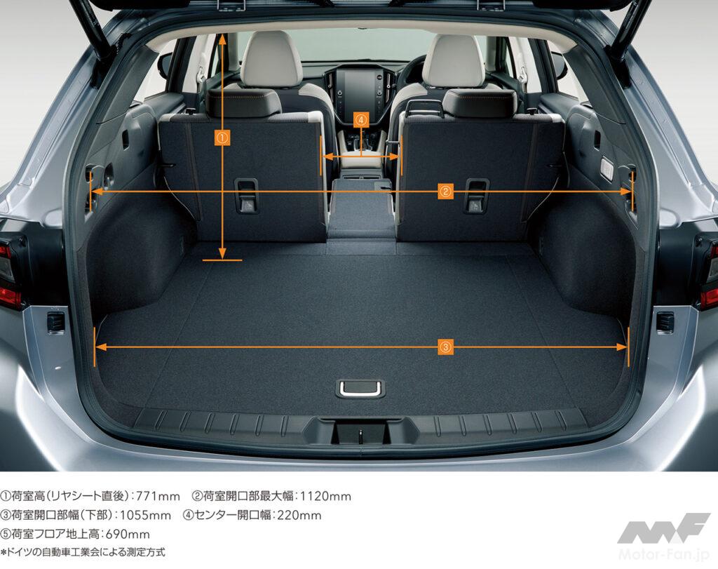 全長4770×全幅1820×全高1570mm、ホイールベース2670mmのディメンションを持つボディに、177ps/300Nmを発する1.8ℓ水平対向4気筒直噴ターボエンジンとCVT(リニアトロニック)を搭載し、四輪を駆動する。WLTCモード燃費は13.6km/ℓと発表された。