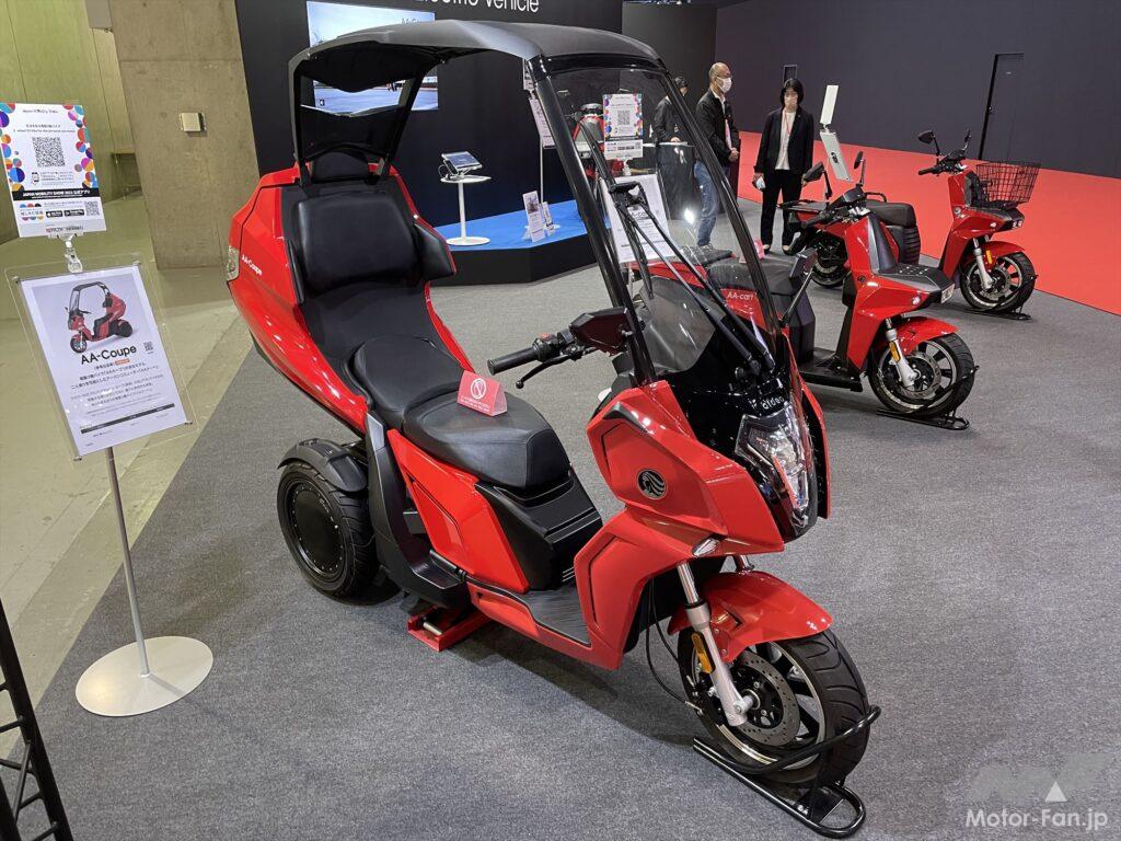 ジャパンモビリティショーではアイディアブースでは、3車種、5バリエーションの電動バイクを展示。そのうち3輪モデルのAAカート(荷台水平タイプ)と屋根がついたAAクーペは、公の場に出てくるのは初めてのモデルだ。
