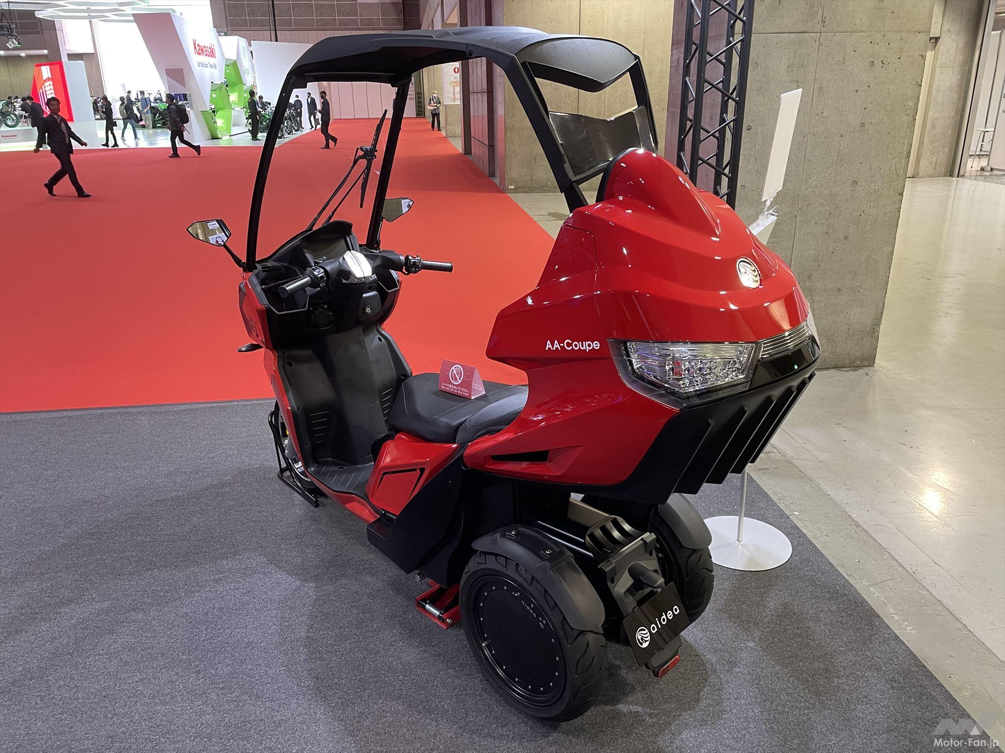 ジャパンモビリティショーではアイディアブースでは、3車種、5バリエーションの電動バイクを展示。そのうち3輪モデルのAAカート(荷台水平タイプ)と屋根がついたAAクーペは、公の場に出てくるのは初めてのモデルだ。