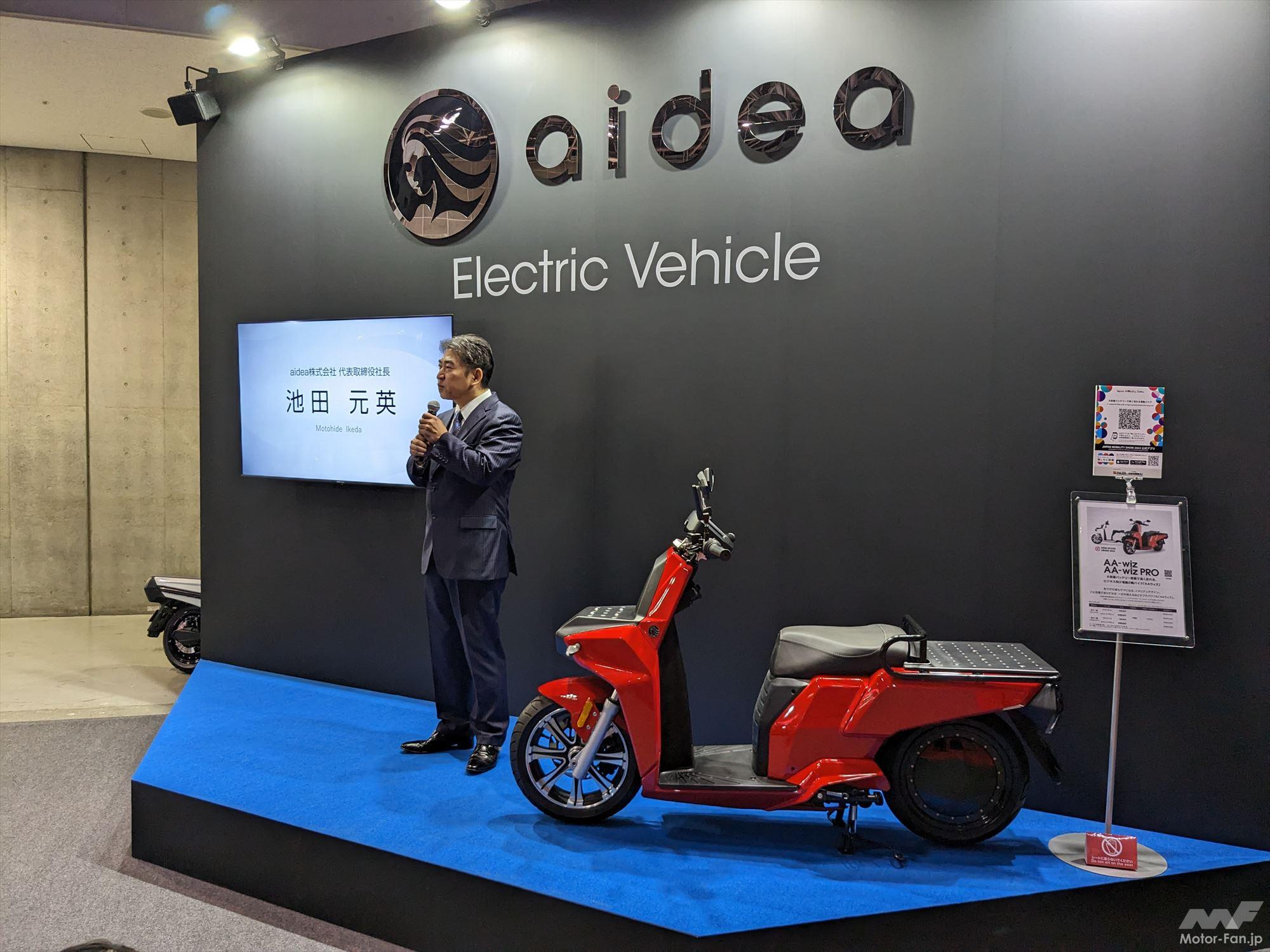 その一方で、イベントの名称とコンセプトが変更された今回、比較的小規模な企業も多数参加。その一社であるaidea株式会社(アイディア)は、小型の電動バイク2車種を世界初披露した。