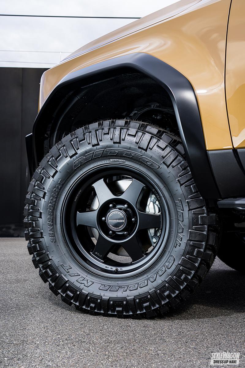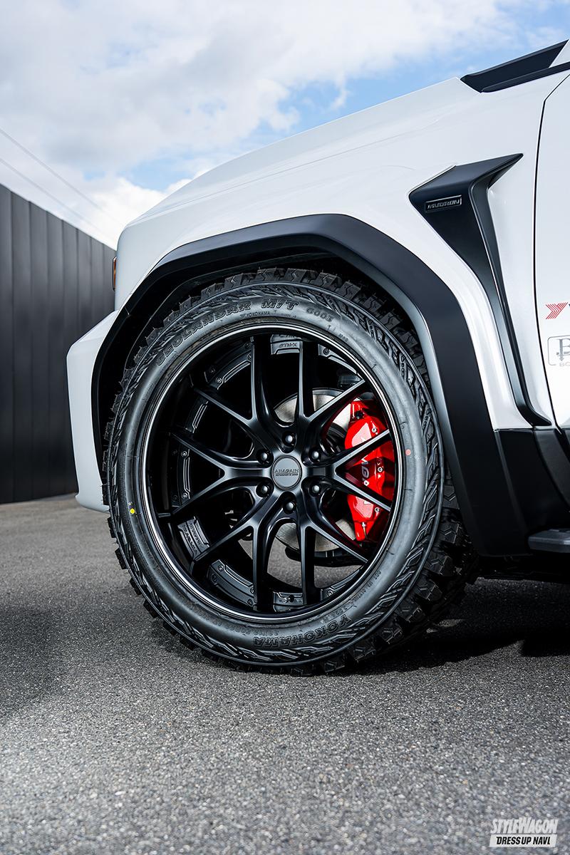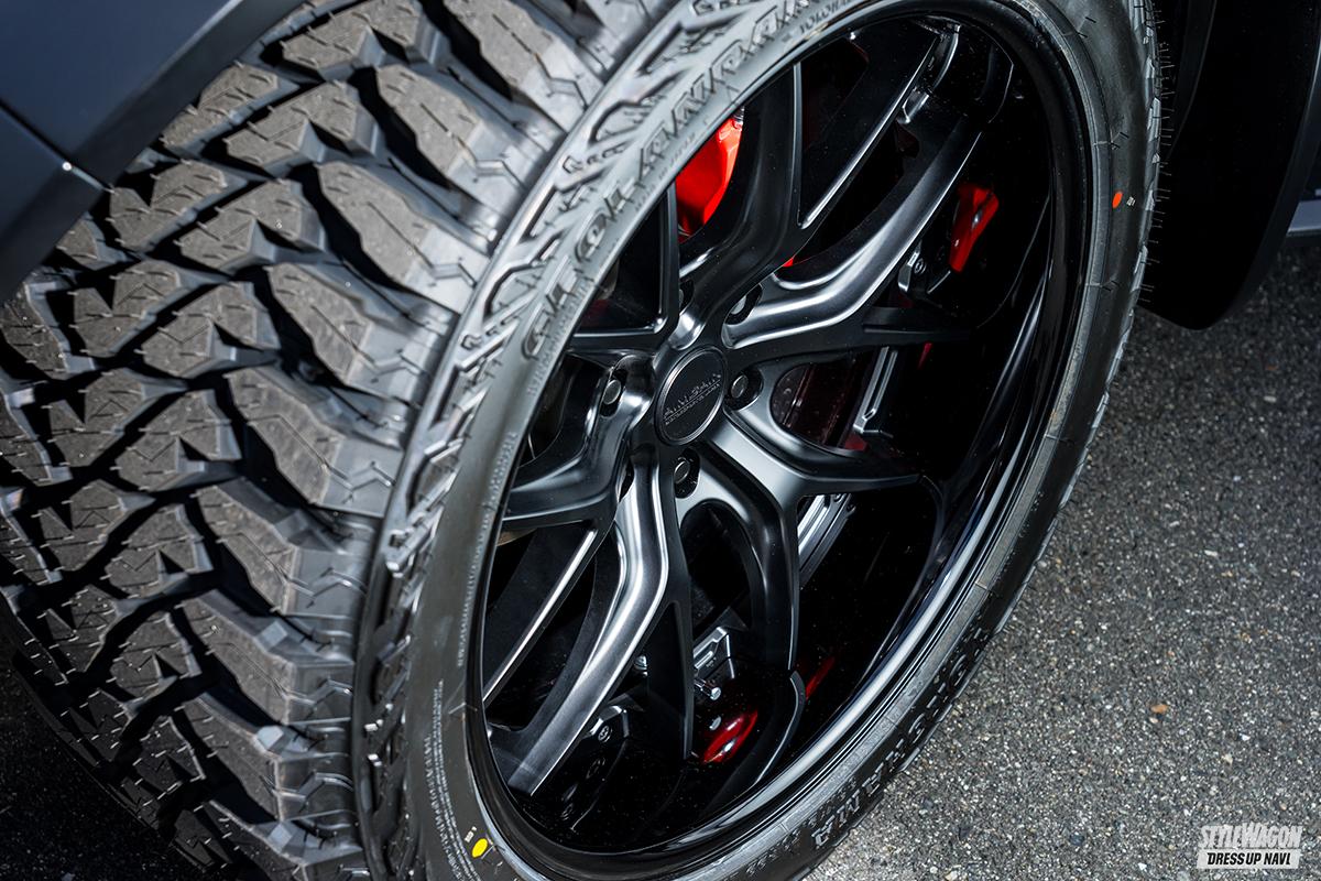 ベタ落としの250には最新作のGTM‐Xを装着。普遍的かつスポーティな高品位メッシュとして大人気なGTMをベースに、SUV向けのサイズ設定などを与えた2ピースモデルで、その印象は鋭く躍動的。ただし2ピースだからリム深度にもこだわれるのが強みで、疾走感が強めながら250に相応しいパワー感も兼ね備えられている。