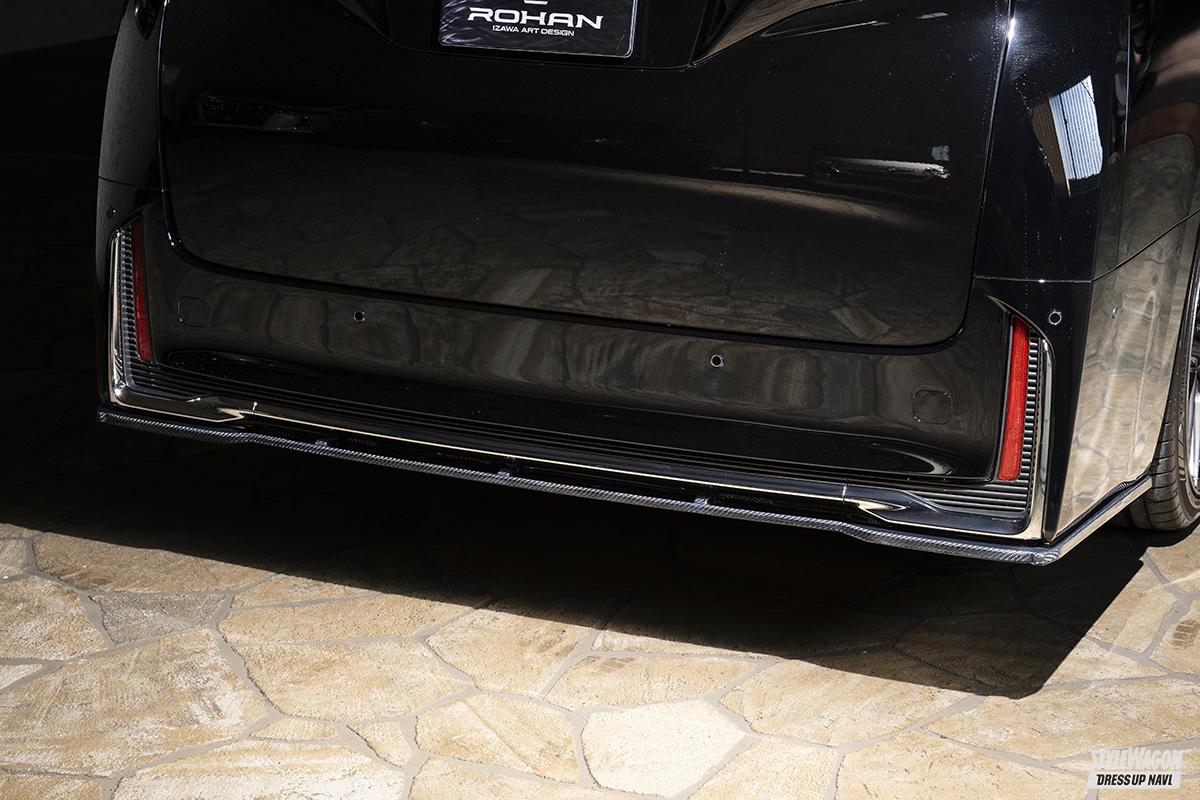 世界的なカスタムペインターである井澤氏が率いるスゴ腕集団、ローハンは、オリジナルエアロブランドである130デザインで40ヴェルファイア用ボディキットを2023年にいち早く完成させたことでも話題に。そんな130デザインが新ブランド、ワンサーティーへとバージョンアップし、東京オートサロン2025会場でお披露目したのがこのヴェルファイア用エアロの第二弾。前作はフロントハーフとサイドアンダー、リアハーフという構成だったが、今作はすべてを極薄のディフューザー形状へと進化させてきたから要チェックだ。