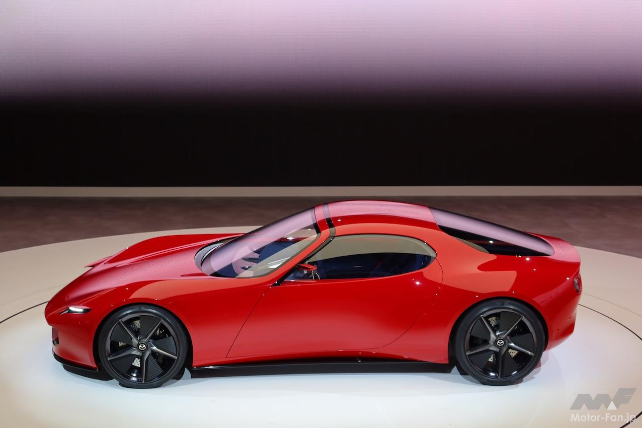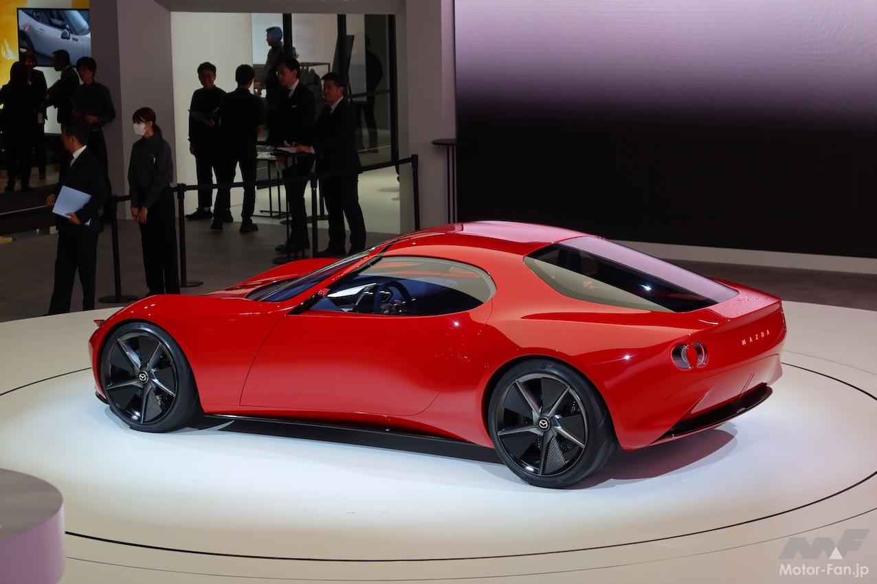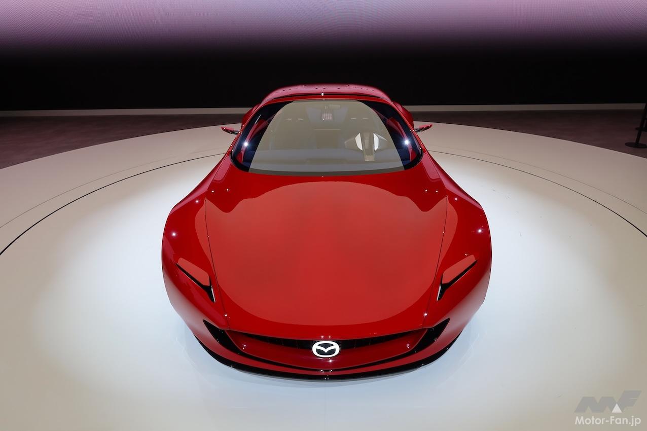 マツダの歴史を振り返ってみると、コスモスポーツがあり、RX-7があり、ロードスターがある。レースカーでは(1991年のル・マン24時間で総合優勝した)787Bがあります。いつの時代もこれらのクルマとファンに支えられ、マツダは存続してこられたし、我々のモチベーションにもなってきました。100年に一度の変革期と言われるなかで、東京モーターショーは今回、ジャパンモビリティショーに名称を変えました。これをきっかけに、マツダは将来的にどんな価値をお客様に伝えたいのか、それをアイコニックSPに投影しました。このクルマを見て、ワクワクしていただいたり、カッコイイとか「乗ってみたい」と思っていただけたりしたら、我々のメッセージは伝えられたと思っています。
