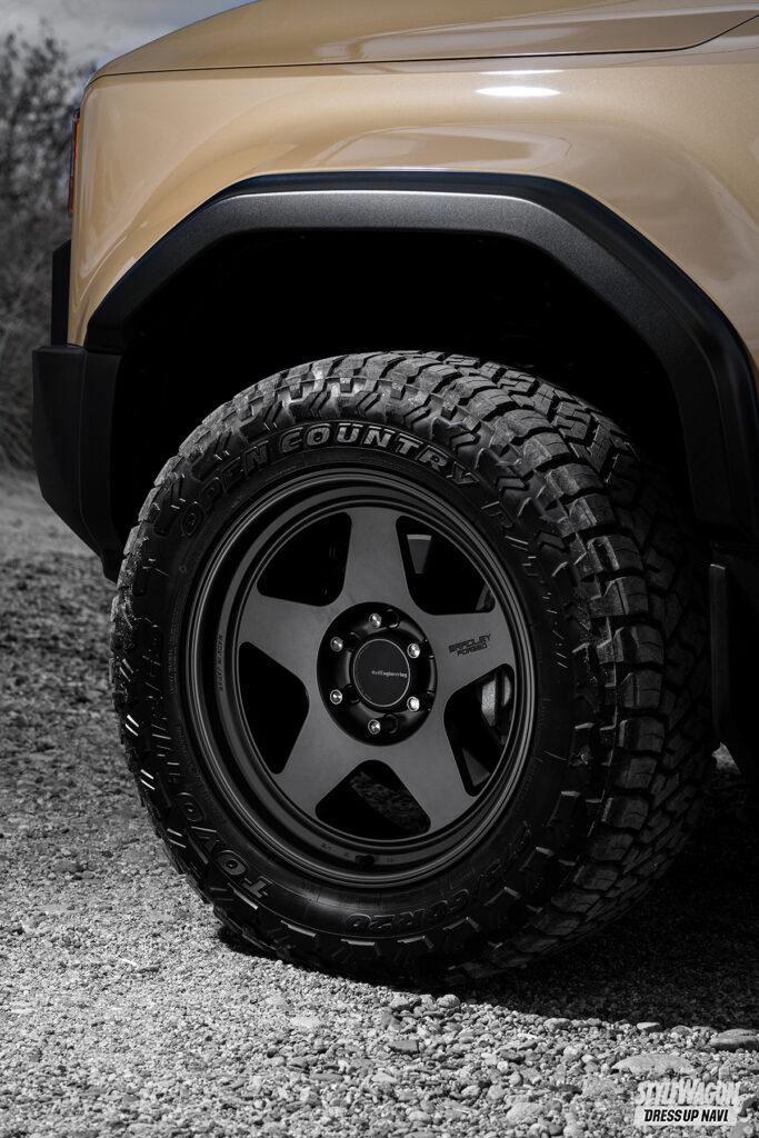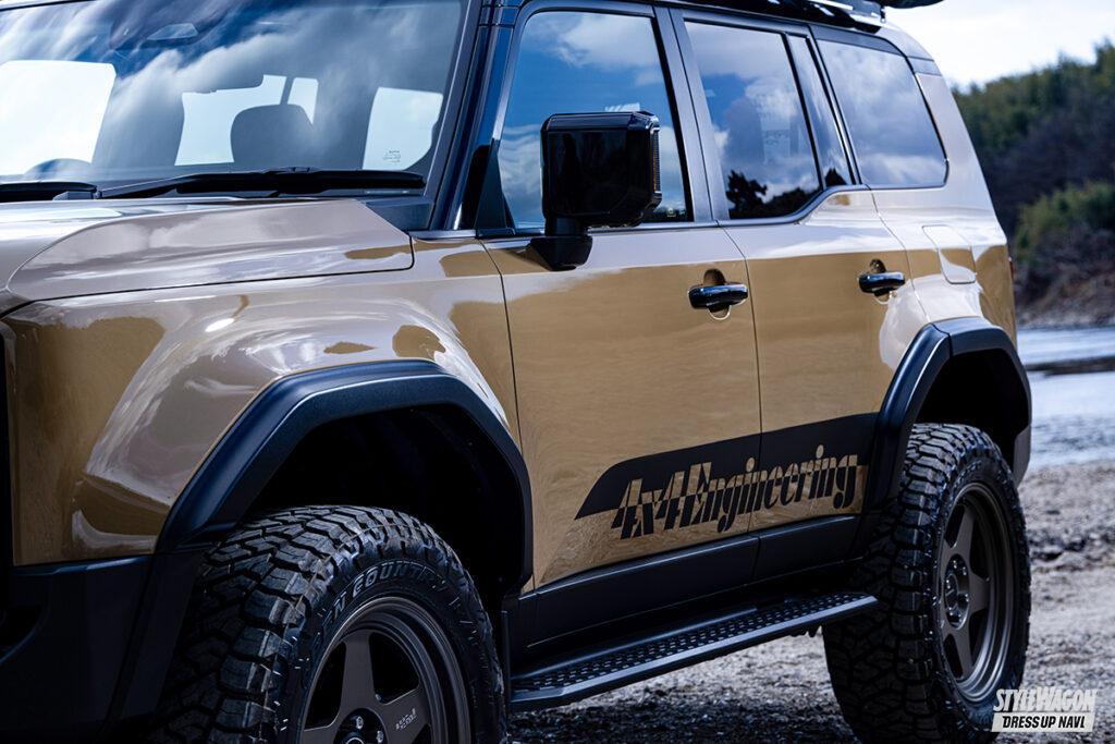 元々ランクル250は最近のクルマの潮流に沿ったハイオフセットの車両。そのためリムの深いホイールは履けないという事情がある。そこで、4×4エンジニアリングでは新たにオーバーフェンダーをリリース。これにより「9J+18というリムが稼げるインセットが履ける」ようになるという。もちろんデザイン面でもボディに自然になじみながらしっかりと存在感を放つ造形でフィニッシュ。そこに、2インチリフトアップバネと今回新たに誕生したブラッドレーフォージド匠の20インチを組み合わせ、圧巻のスタイルを実現しているのだ。リム深ホイールが履けて、どこへでも行ける理想の1台。これは要注目ですぞ。