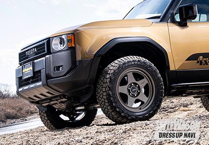 元々ランクル250は最近のクルマの潮流に沿ったハイオフセットの車両。そのためリムの深いホイールは履けないという事情がある。そこで、4×4エンジニアリングでは新たにオーバーフェンダーをリリース。これにより「9J+18というリムが稼げるインセットが履ける」ようになるという。もちろんデザイン面でもボディに自然になじみながらしっかりと存在感を放つ造形でフィニッシュ。そこに、2インチリフトアップバネと今回新たに誕生したブラッドレーフォージド匠の20インチを組み合わせ、圧巻のスタイルを実現しているのだ。リム深ホイールが履けて、どこへでも行ける理想の1台。これは要注目ですぞ。