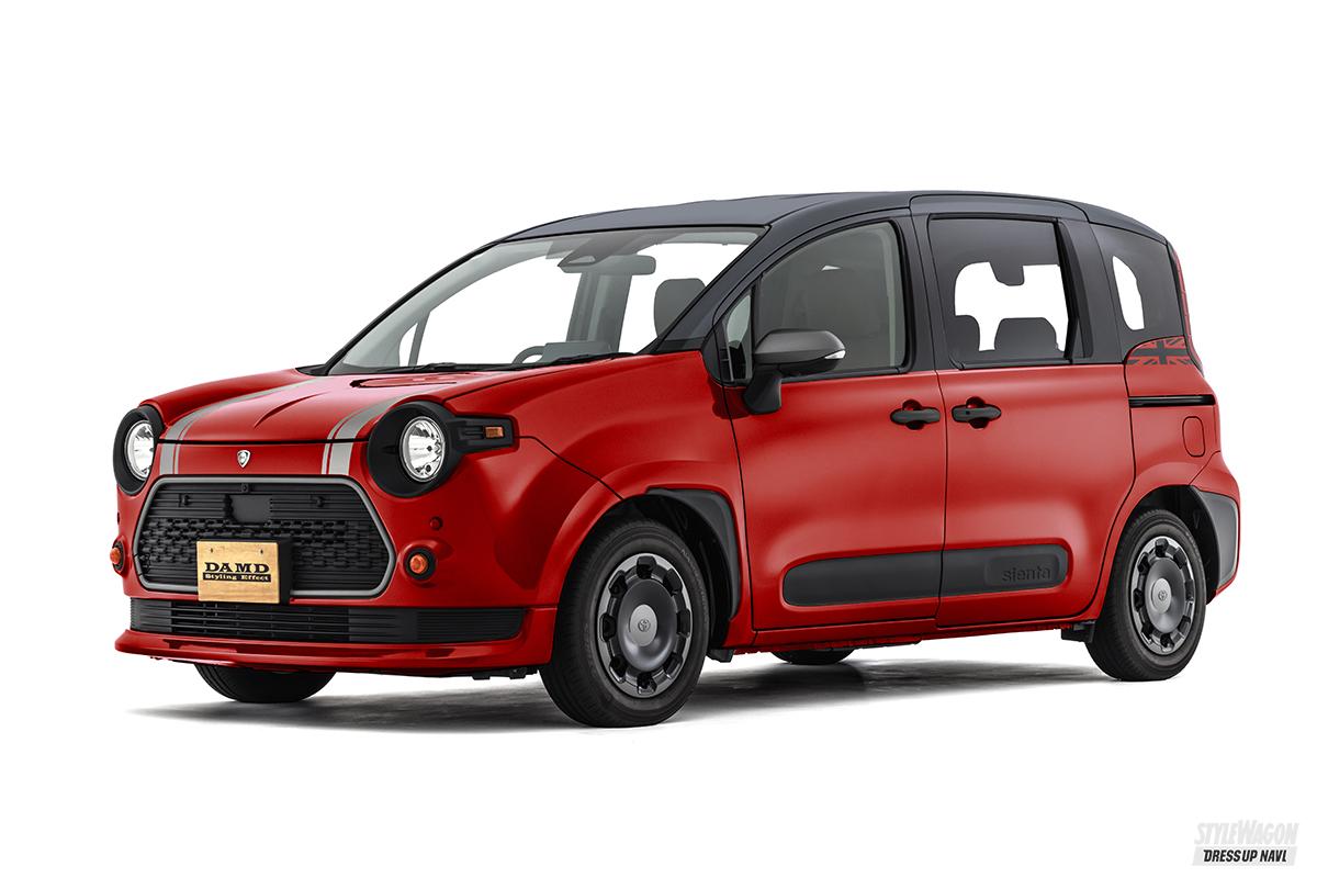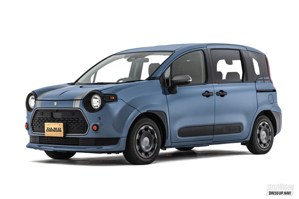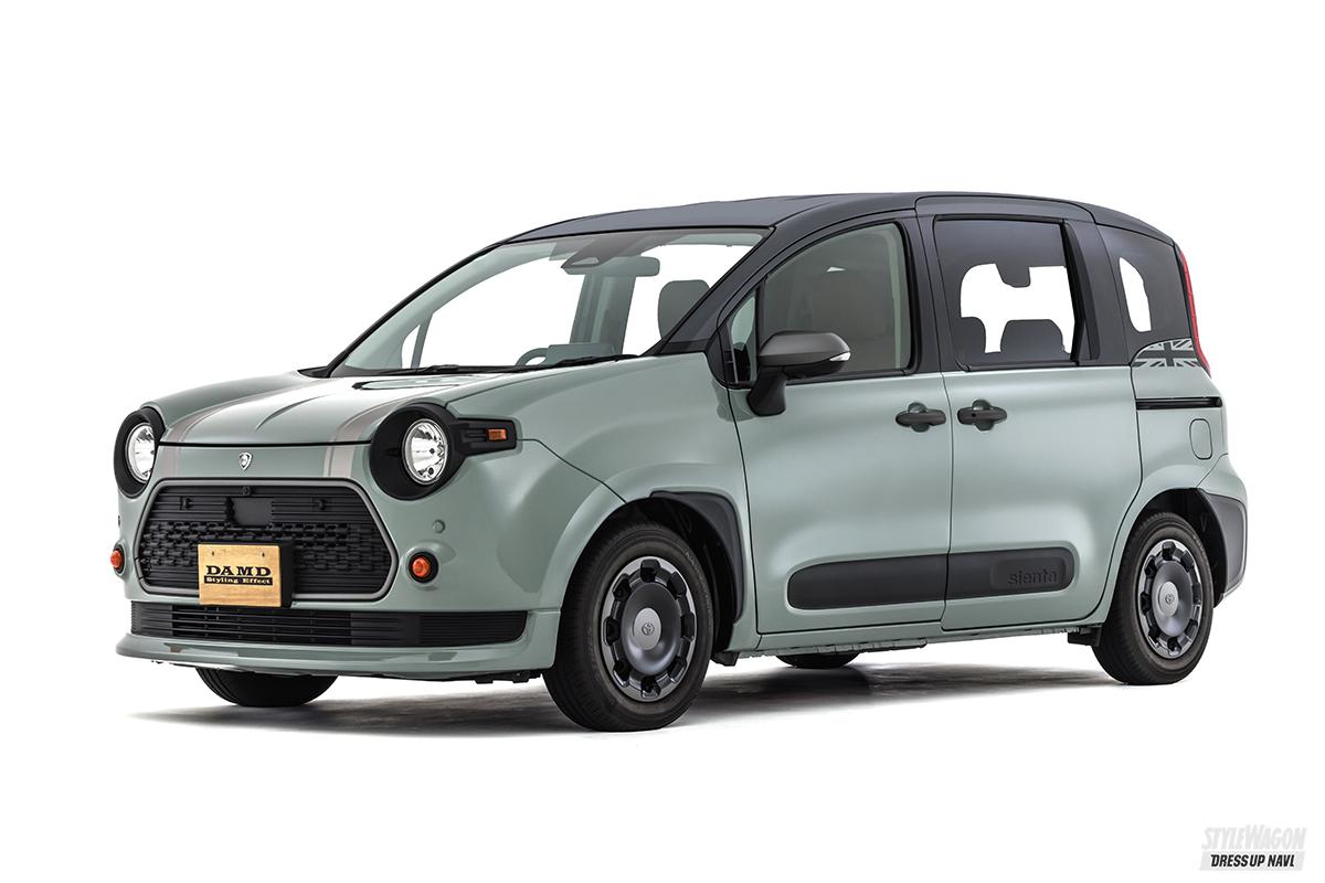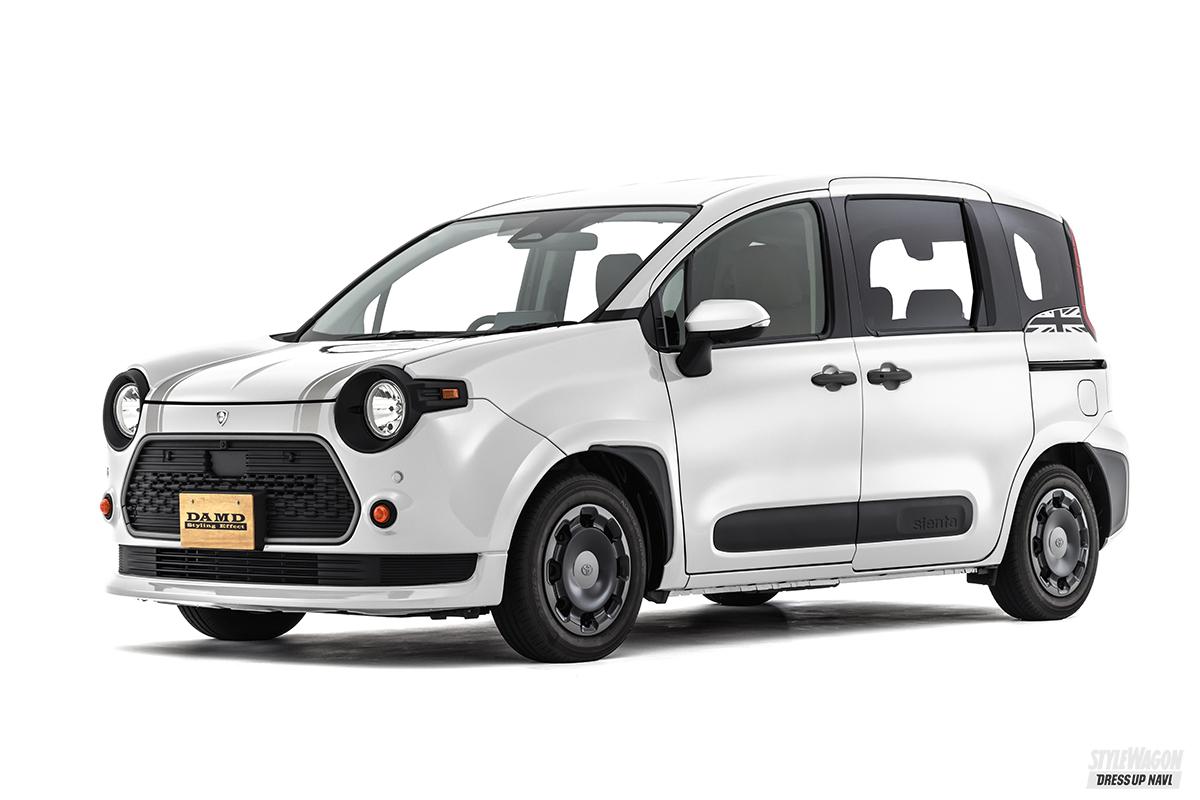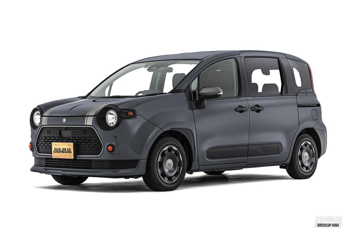 東京オートサロン2025でダムドから発表されたトヨタ・シエンタ用のボディキット「DAMD SIENTA STUART」。ブランドテーマでもあるネオクラシックを基軸にしながら「スライドドアの丸目でかわいいミニバンを作ろう!」というコンセプトで開発されたのが、トヨタ・シエンタ専用のフェイスチェンジキット。