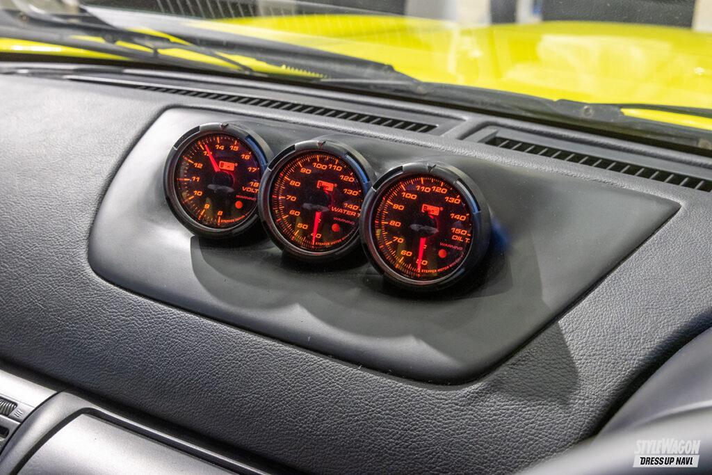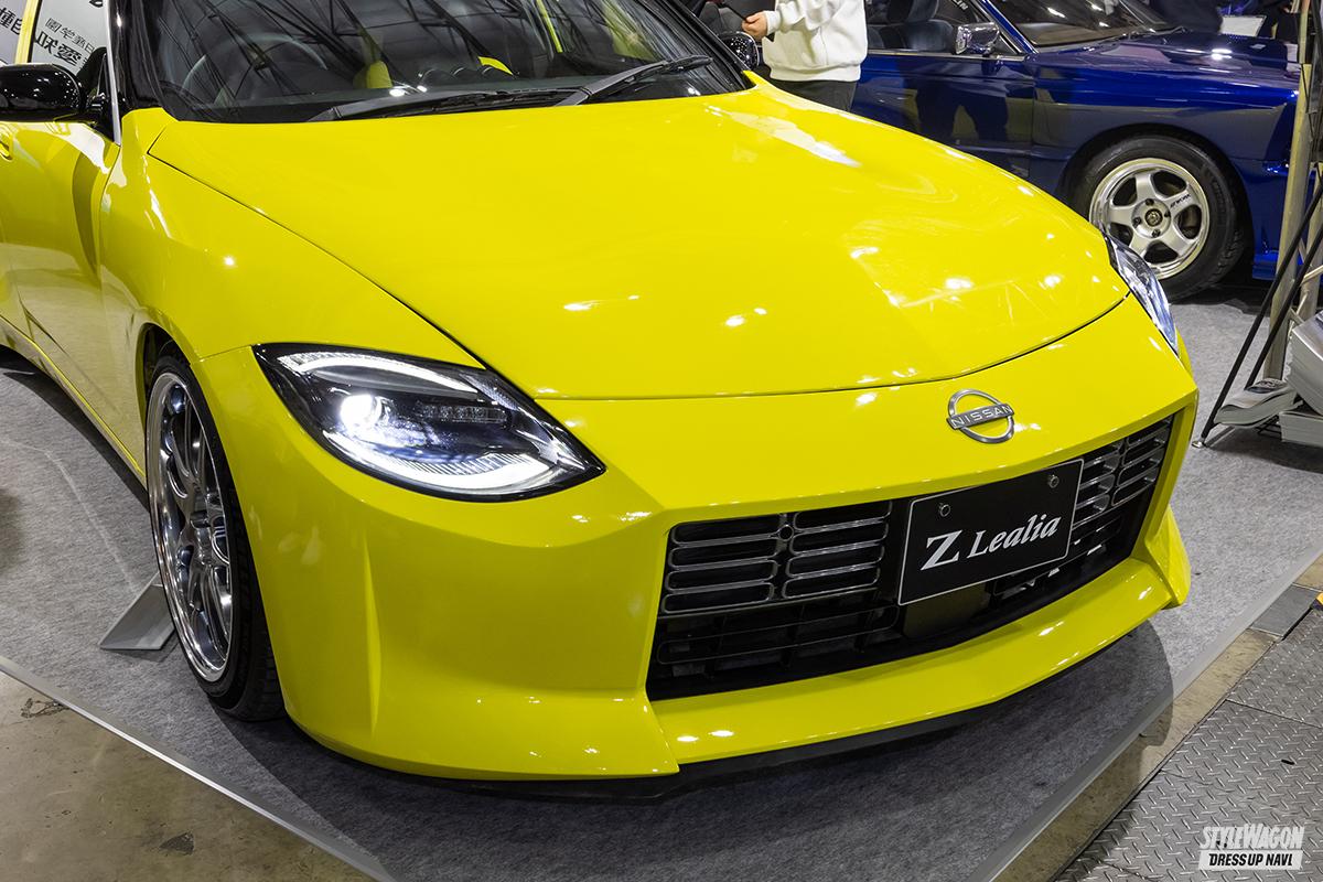 日産愛知自動車大学校/日産京都自動車大学校の学生達の思い描いたカスタマーターゲットは「30代男性、妻子あり」というオーナー像。昔自分のお父さんが乗っていたZの走りに憧れ、でも今は妻子があって2シーターのクルマは選べない。そんなパパに向けての提案が、フェアレディZ“ワゴン”というわけだ。ベースは日産車の中でも走りのワゴンとして定評のあるステージア。そこにRZ34のフェイスを融合させた。また、Zらしい雰囲気を作るためリアにはリーフを合体。「ステージアのフレームを切って移植しているので、補助のフレームをどう入れたら強度を保てるか。基準に合わせるのがとても大変でした」。