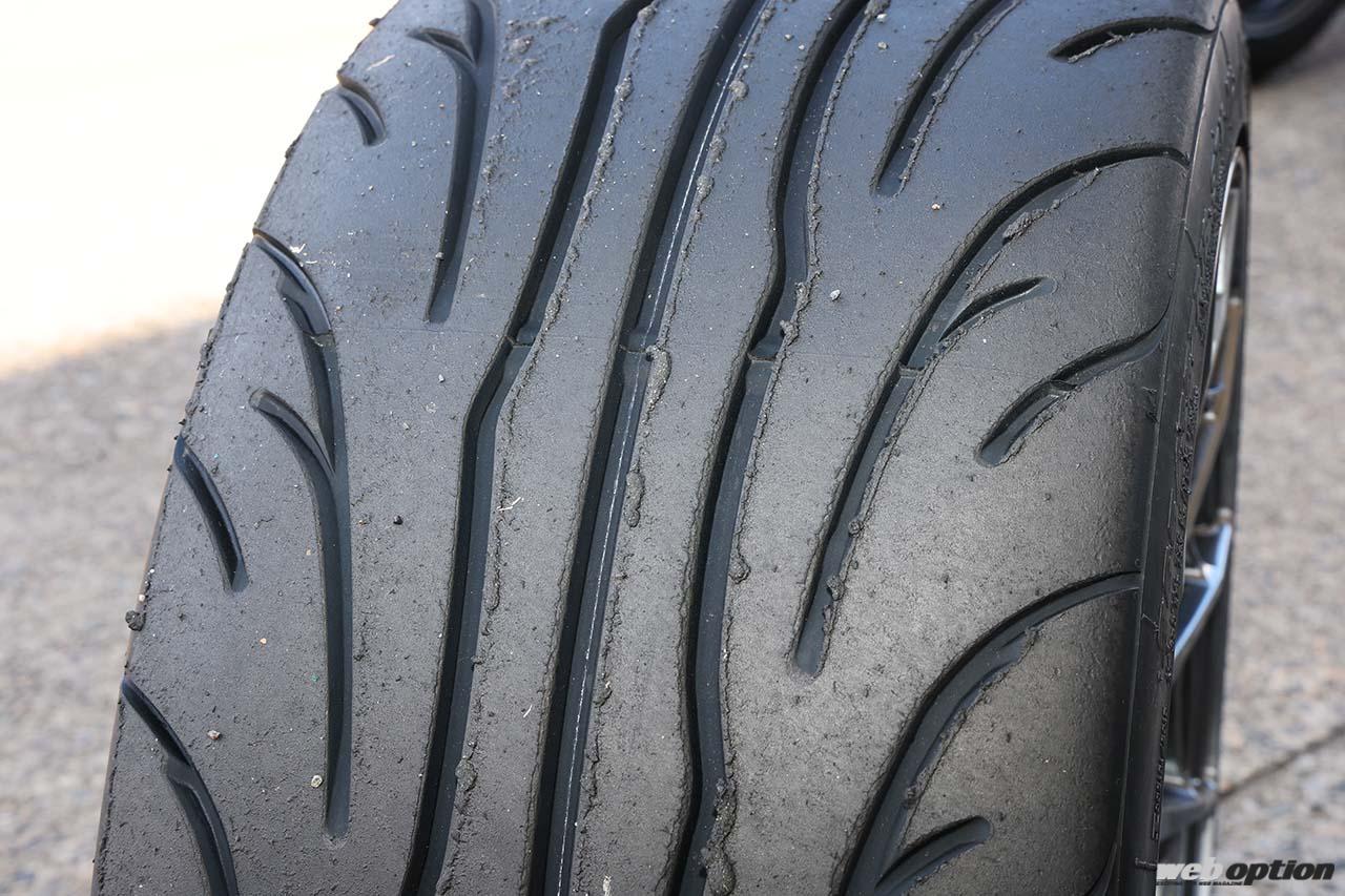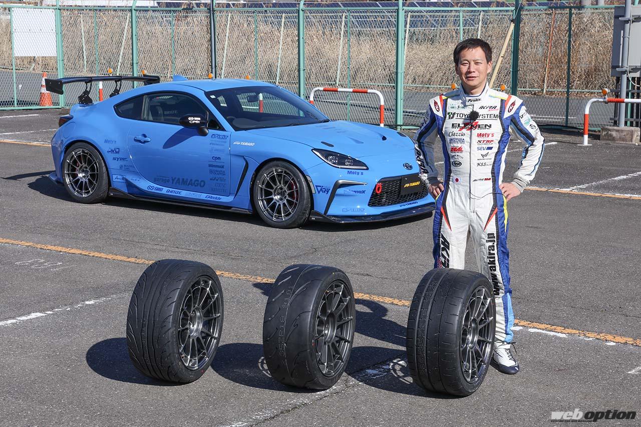 「CR-Sとグリップ力のピークはほぼ同じなんだけど、少しゴムが動くというか柔らかさを感じる。リヤタイヤがグリップしているからなんだろうけど、サスのセッティングを変えないままだとアンダーが強くなってタイムが伸びなかった。ただ、熱の入りは良いので、タイヤの前後バランスに合わせてサスペンションをセッティングできる人だったら、サーキットだけでなく、ジムカーナにも向いているタイヤだと思うよ」。