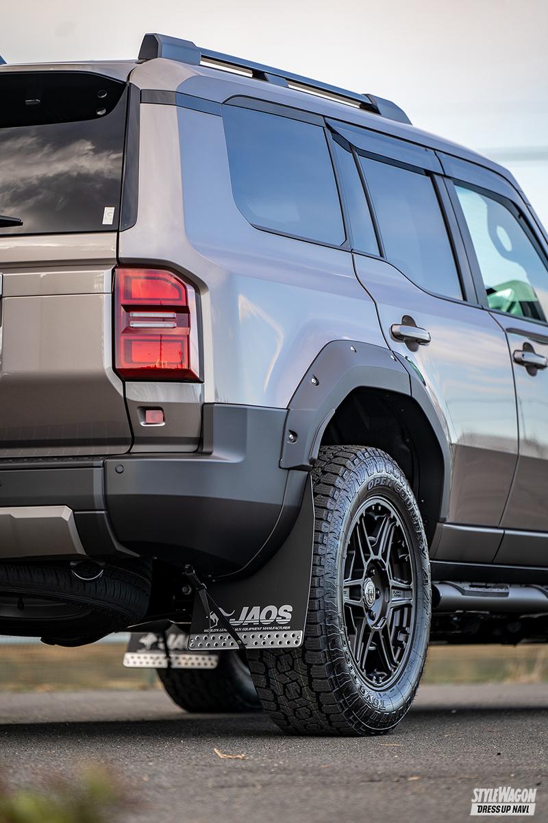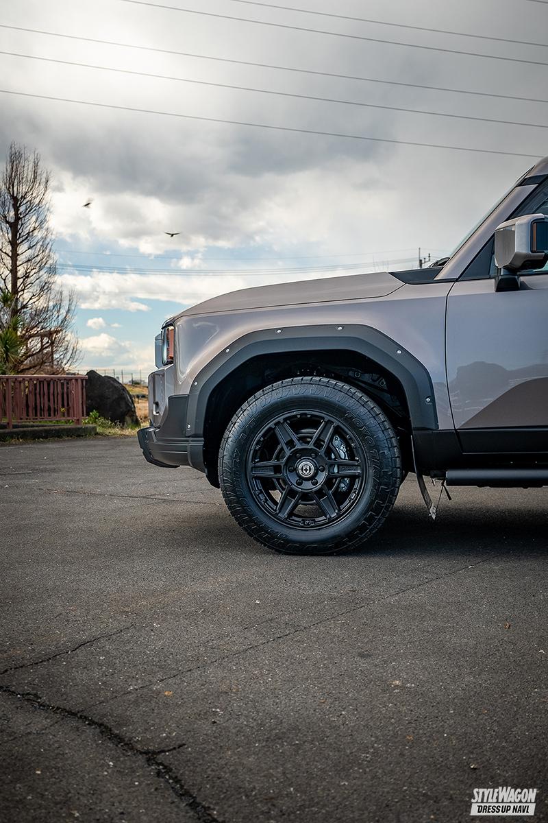 そこで世界中の名だたる高級ブランドのパーツを取り扱うラガーコーポレーションを含むボンドグループが新たに用意したのが、ランクル250/300にジャストフィットする専売サイズ。ご覧の通り、絶妙なツライチ具合で収まる。HREの本格オフロードホイールが、純正フェンダーのまま履けるのはうれしいニュースだ。