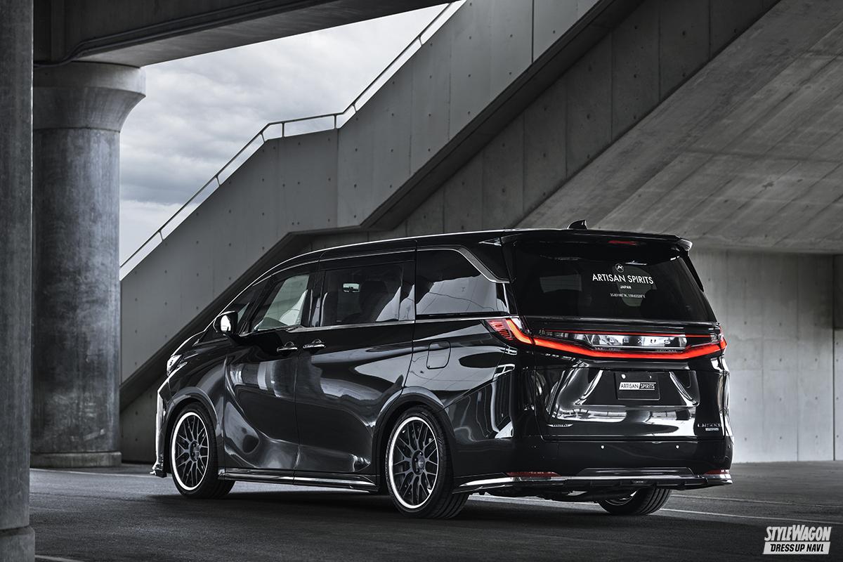 海外だけでなく、正式導入されなかった国内でも人気を博した先代LM用ボディキットを手がけるなど、レクサスカスタムのスペシャリストとして知られるアーティシャンスピリッツ。そんな同社が、現行LMに用意したのは、純正の持つプレミアムなイメージをさらに深化させるプログラムだ。