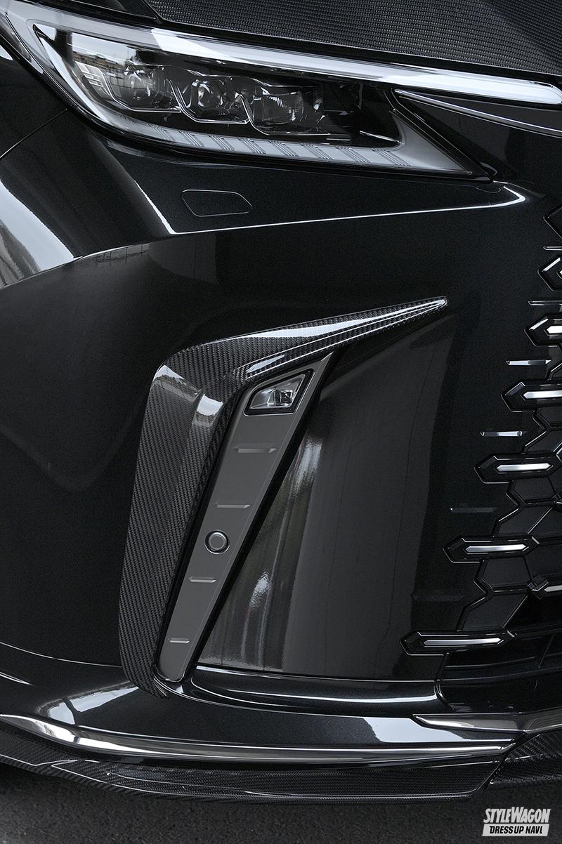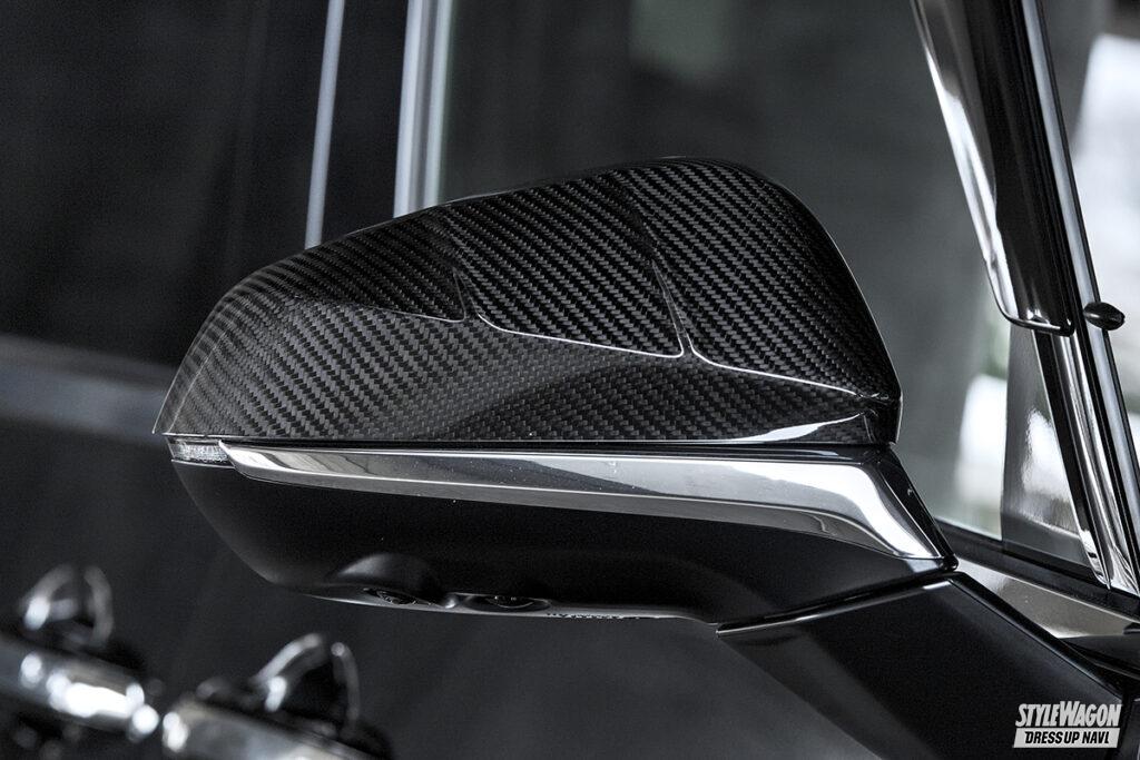 オートサロンで初お披露目となったLM用ボディキットは、あくまでクリーンでシンプルな造形を採用。それでいて躍動感もしっかりと、高級感を高めながらスポーティな印象をプラス。ベースとなる前後左右のエアロのほか、スタイリングを突き詰める充実のラインアップを揃える。その洗練されたデザインはもちろんだが、純正の機能や走行面にも配慮した設計となっているのも魅力のひとつだ。また、設定されるボディキットは、FRPだけでなくセミドライカーボンやカーボンを選べる点も見逃せない(一部はセミドライカーボンまたはカーボンのみの設定)。最高峰の素材感とクオリティを誇るマテリアルでも、LMにふさわしい世界観が演出可能となっている。