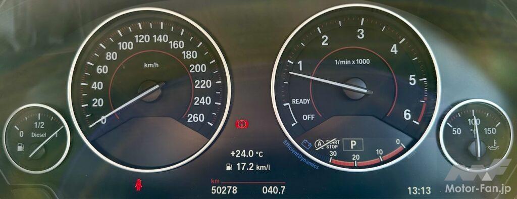 じつは、ディーゼルのF30後期型BMW320dスポーツの前の愛車は、ガソリン(N20型2.0L直4DOHCターボ)を搭載するF30前期型BMW320i SEだった。F30前期型320i SEは7.2万km走行して実燃費が11.5km/L(平均時速は30.2km/h)だった。