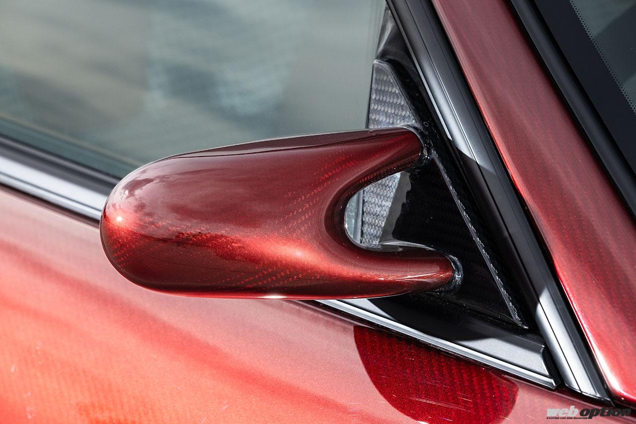 キャンディレッド×カーボンブラックの2トーンカラーは、オーナーの要望に応えて実現されたもの。塗装を吸いやすいカーボン地でのグラデーションという難易度の高い仕上げだが、これも自社の塗装職人の手で仕上げられている。