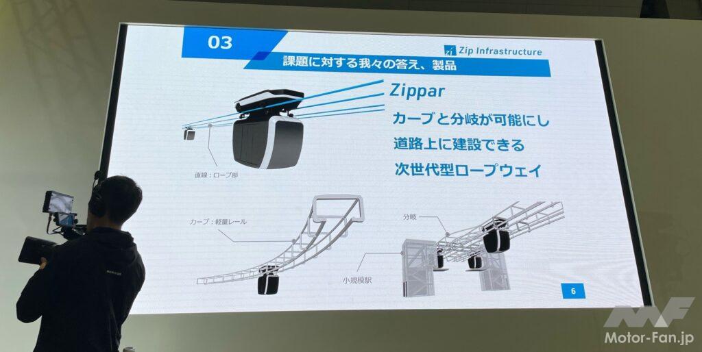 街づくりに貢献する次世代交通システムとして、自走式ロープウェイ “Zippar”を開発する。今までデッドスペースとなっていた道路上の空間に自走式ロープウェイを設置することにより、低コスト・短期間で「渋滞のない、どこでも駅徒歩5分圏内となる世界」の実現を目指している。