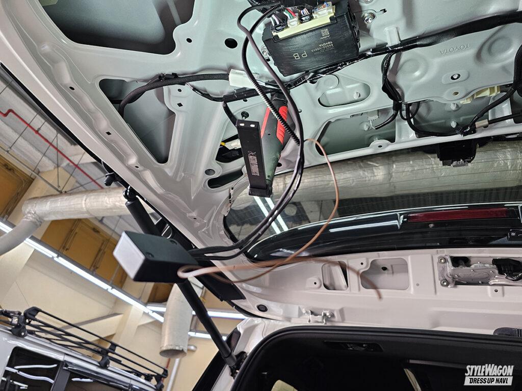 実際にパワーバックドアキットを使っているオーナーに話を聞くと、「自分はもうおっさんなんで(笑)、なんだかんだで自然とリアゲートのスイッチに手をかけてしまう。これまで乗ってきたクルマが全部そうだったんで。そのときに自動でオープンしないと、なんかストレスになってしまうんです。もちろん、純正のテールレンズサイドのスイッチを押せばいいのはわかってるんですけど、なんか慣れって怖いですね。雨の日とか暗いところだと、純正スイッチを探すのが結構大変。だからこのキットを付けてからはかなり便利に、そしてストレスフリーで使えてますよ」とのこと。