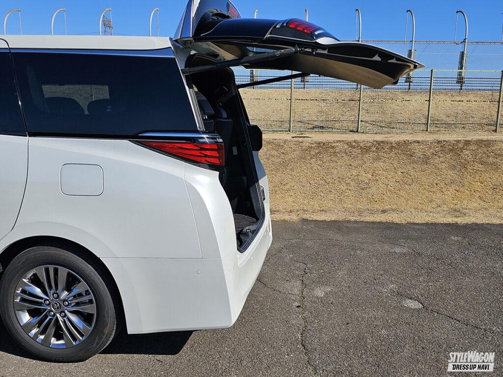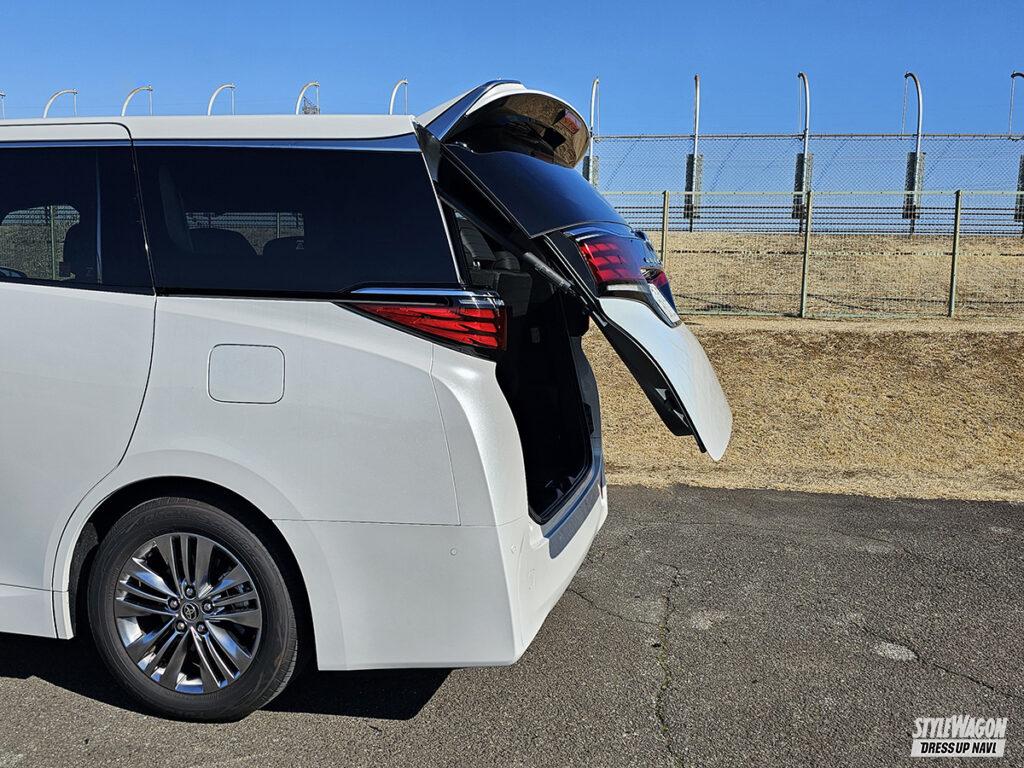 そんな人におすすめなのが、このパワーバックドアキットだ。30アルヴェルの時のように、バックドアのスイッチで開錠して、開錠後にロックボタンを押すと、リアゲートが自動でオープンする。このキットを装着することで、純正テールレンズサイドのスイッチ操作だけでなく、リアゲート側からも自動オープンの操作が追加でできるようになるのだ。