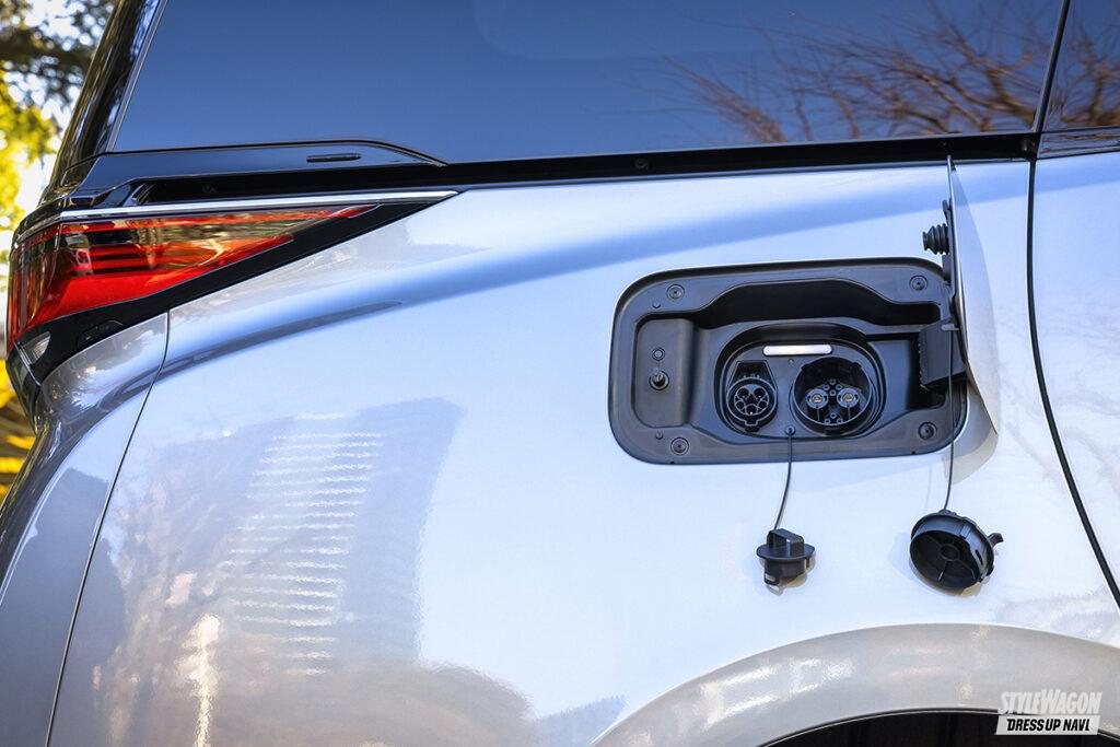 PHEVの充電口はリアの右側に装備。普通充電と急速充電(CHAdeMO)のポートが並んで配置されている。急速充電で約80%まで充電するのに掛かる時間は約38分。