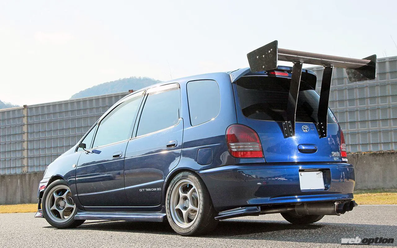 トヨタがかつて販売していたミニバン、AE111N型カローラスパシオをベースにしたチューンドの登場だ。AE111Nという型式からレビン&トレノを連想してしまうが、搭載されているエンジンは4A-GEではなく4A-FE。ミッションも4速ATの設定しか存在しない。