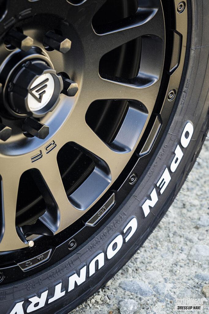 やわらかな12個のホールを備えたそのディッシュは、専用設計ならではの限界ギリギリのアールでコンケイブを描く。車種ごとに大きさが異なるブレーキキャリパーとの干渉も、専用設計だからしっかりと対応。軽くて薄く、しかも強靭なリムを成型できるフローフォーミング製法を採用している点も、重量がかさみがちな最上級オフローダーにはうってつけだ。